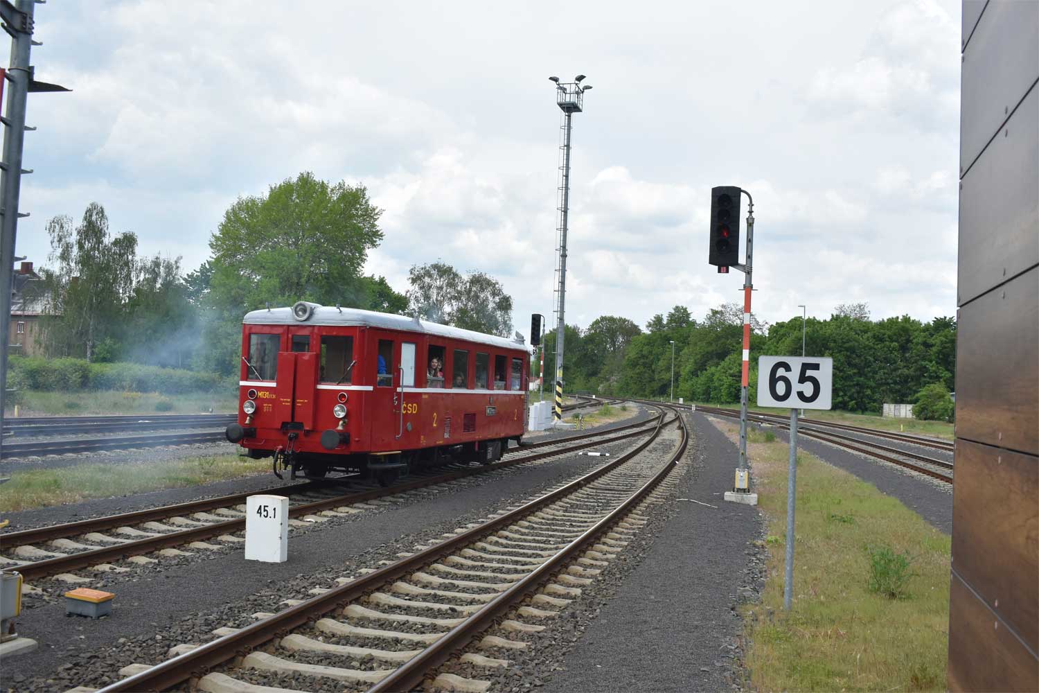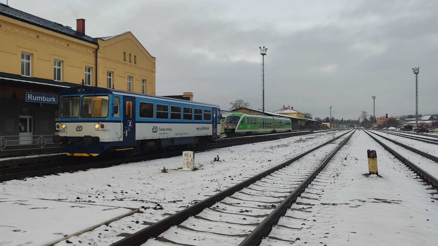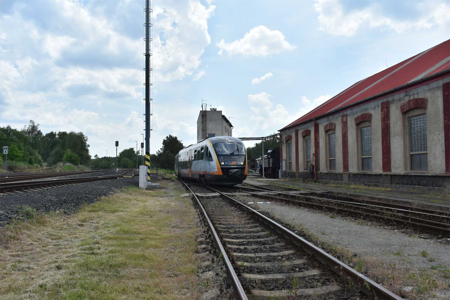 Im Vordergrund die ankommende Strecke von Bakov nad Jizerou (Bakow)