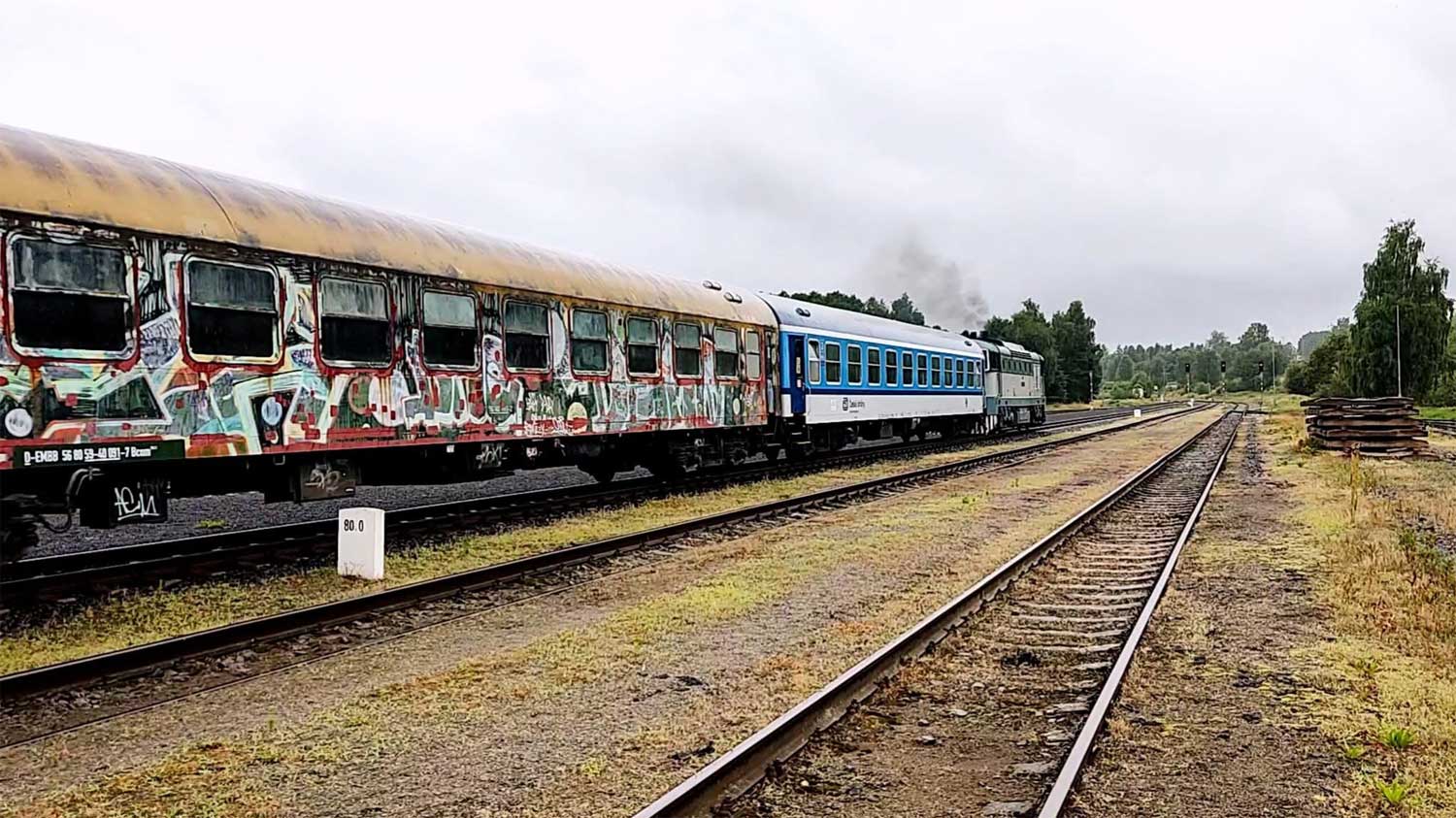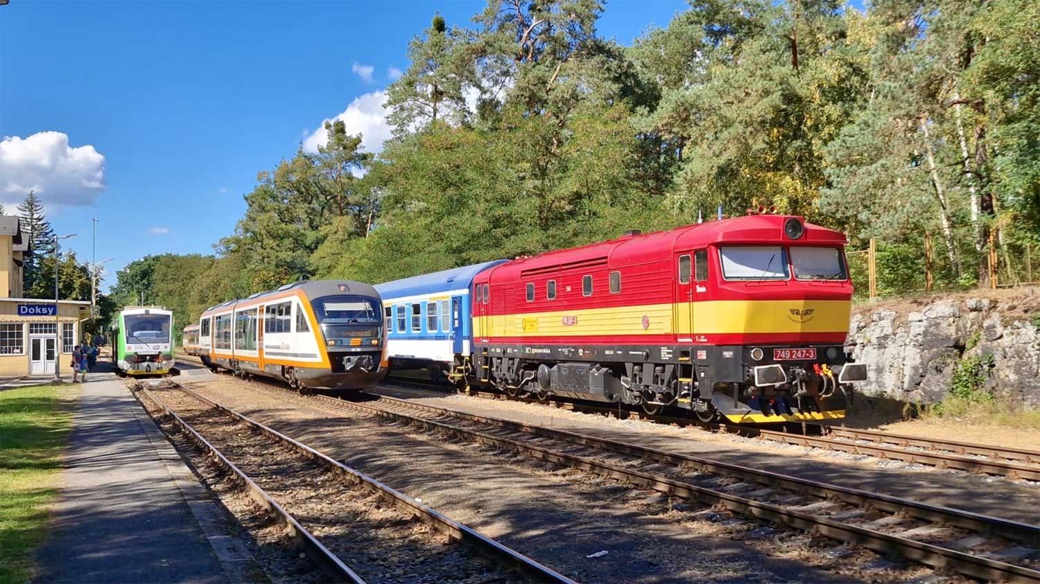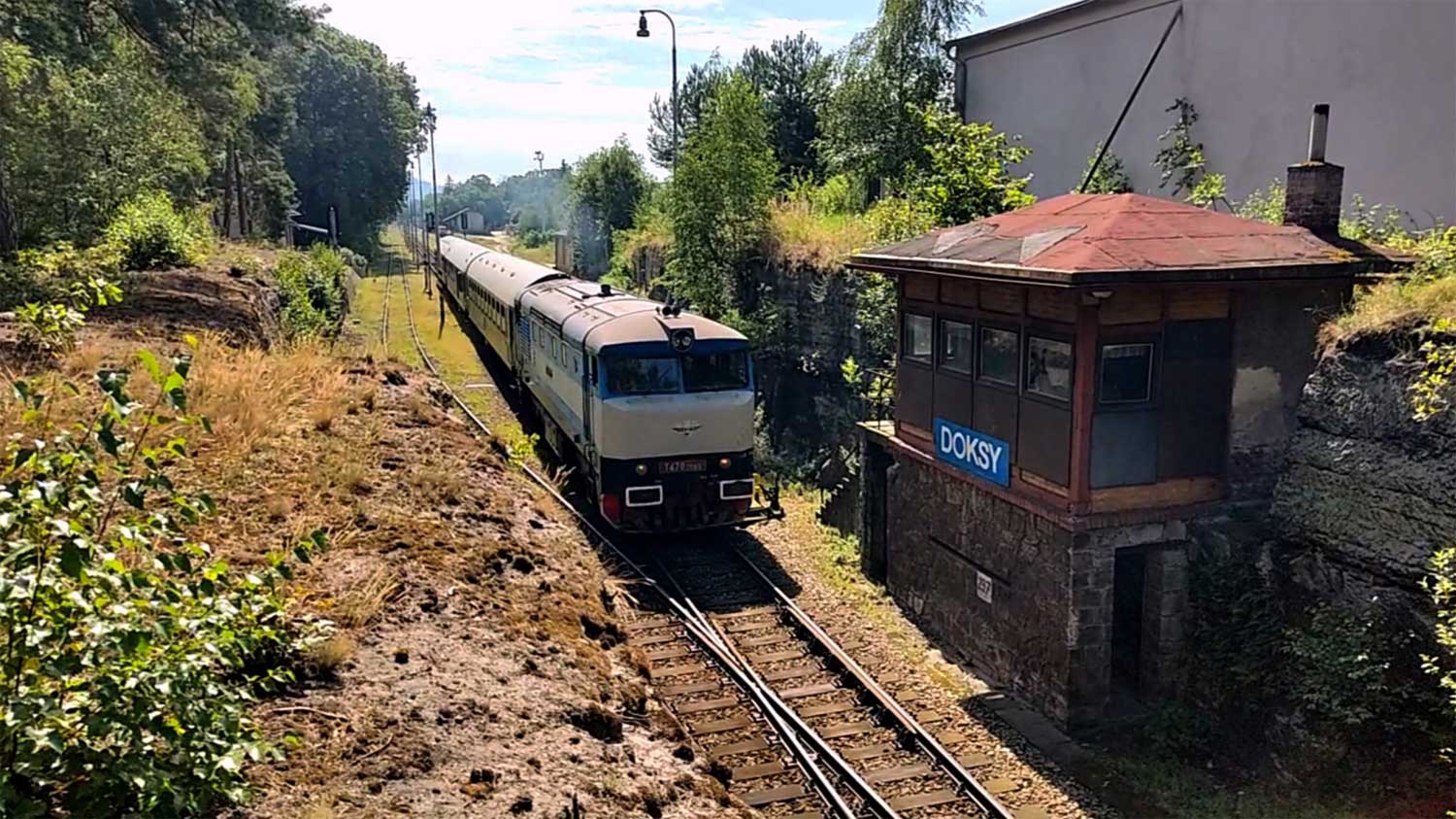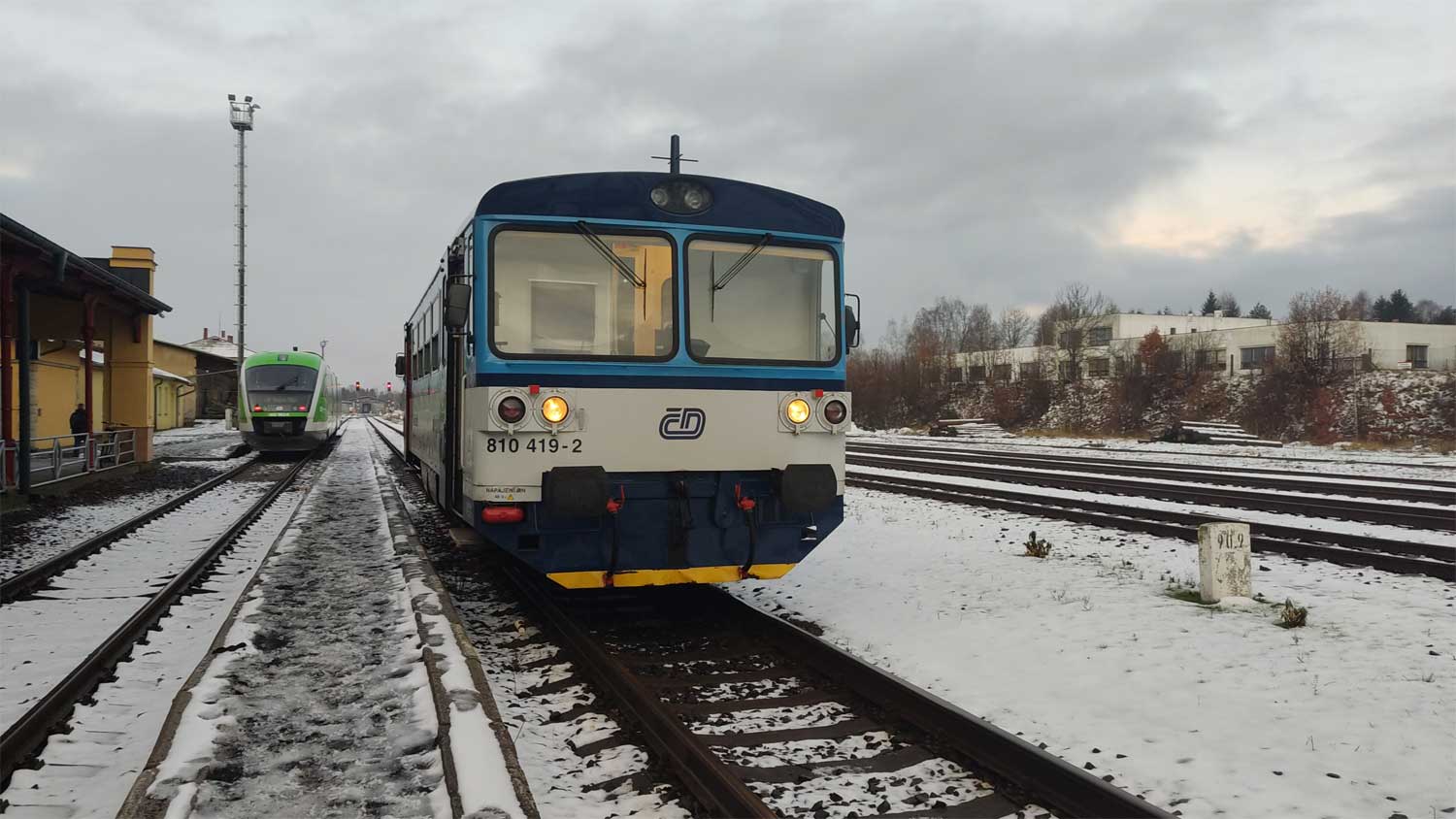 Im Vordergrund die ankommende Strecke von Bakov nad Jizerou (Bakow)