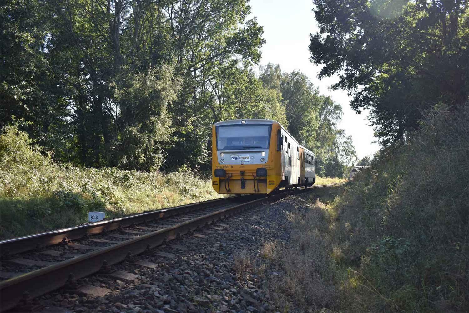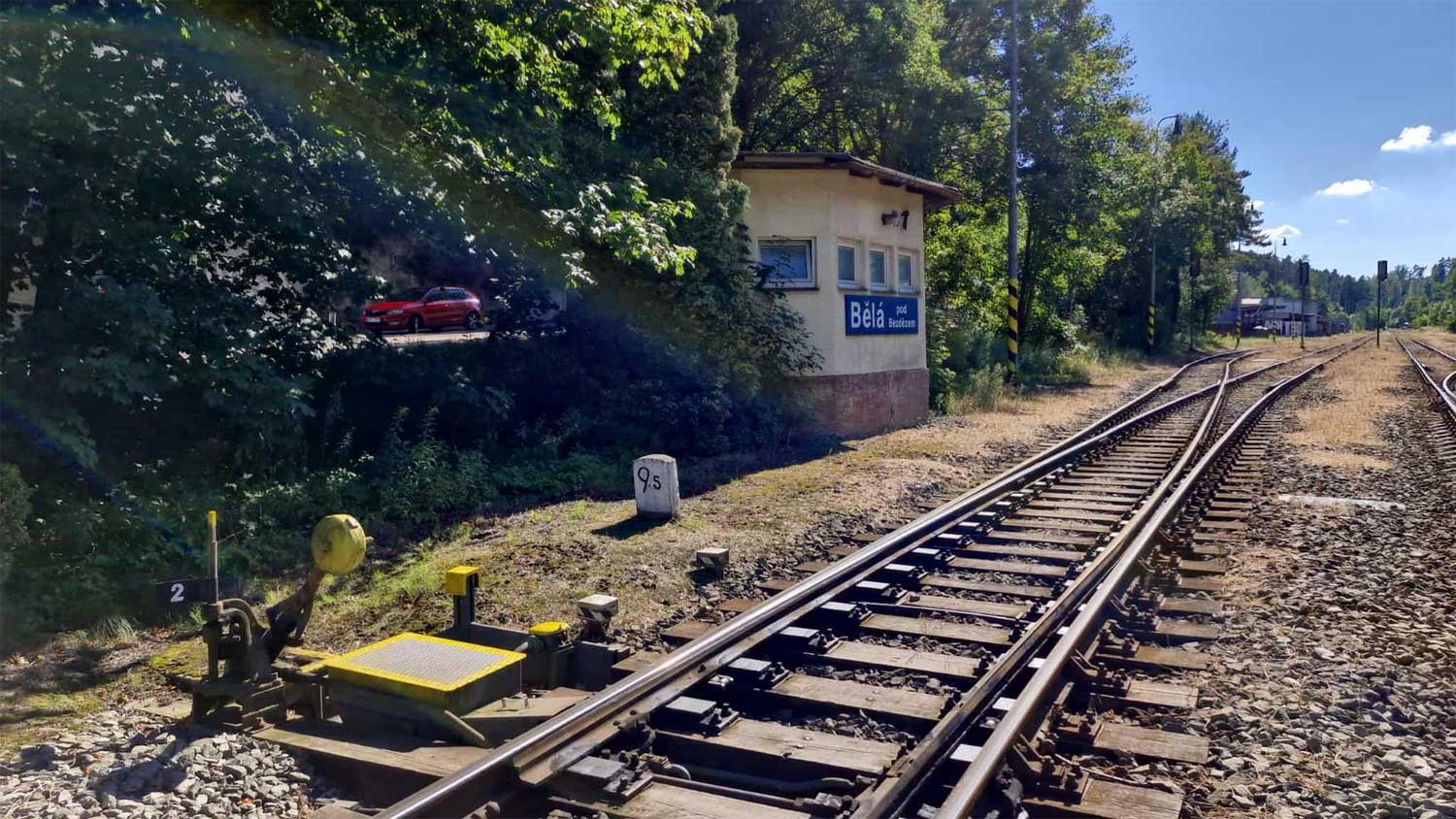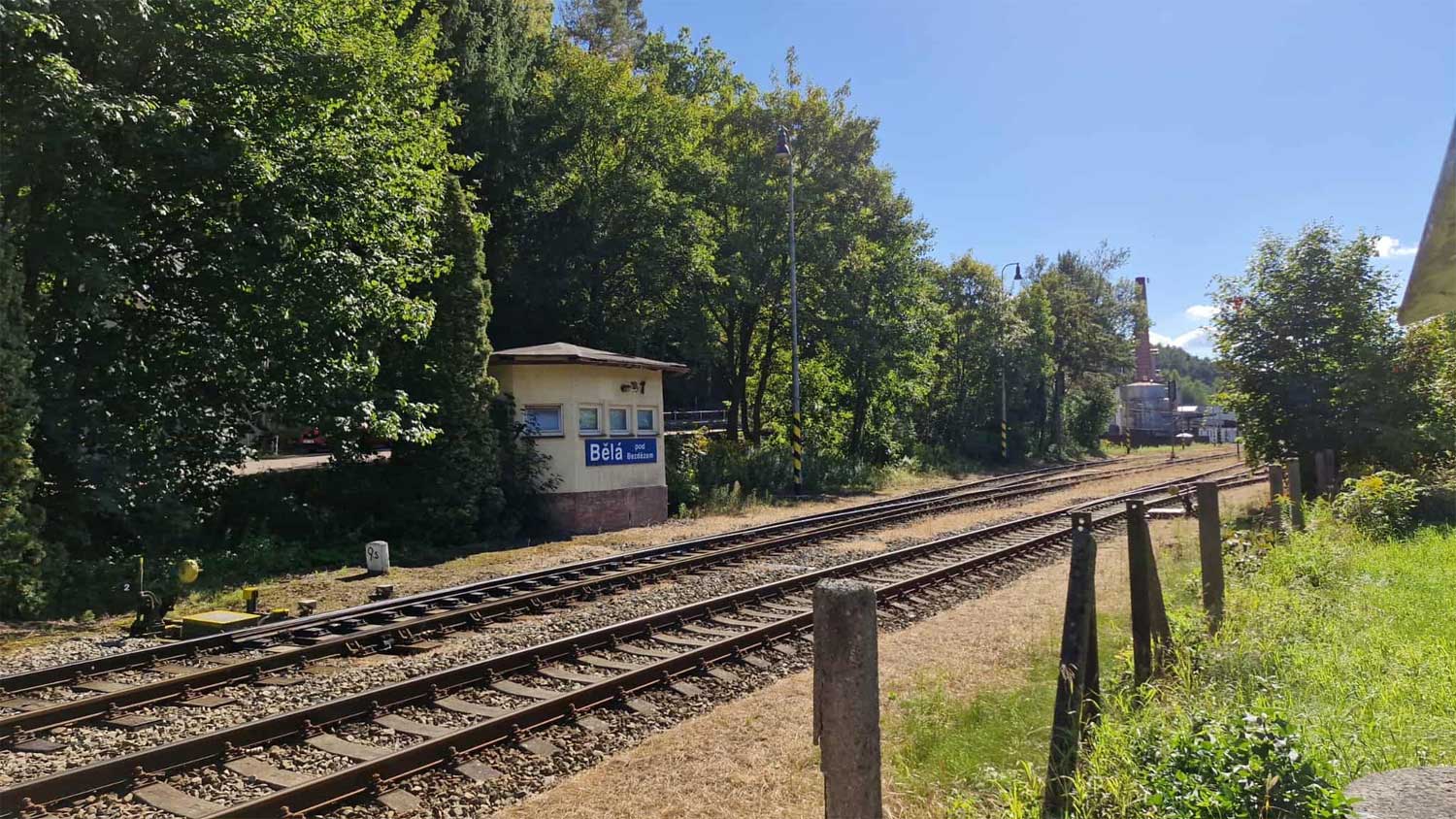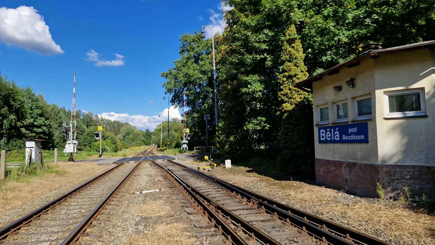 km 7,9 zwischen Bakov nad Jizerou [Bakow (Iser)] und Bělá pod Bezdězem [Weißwasser (Iser)]