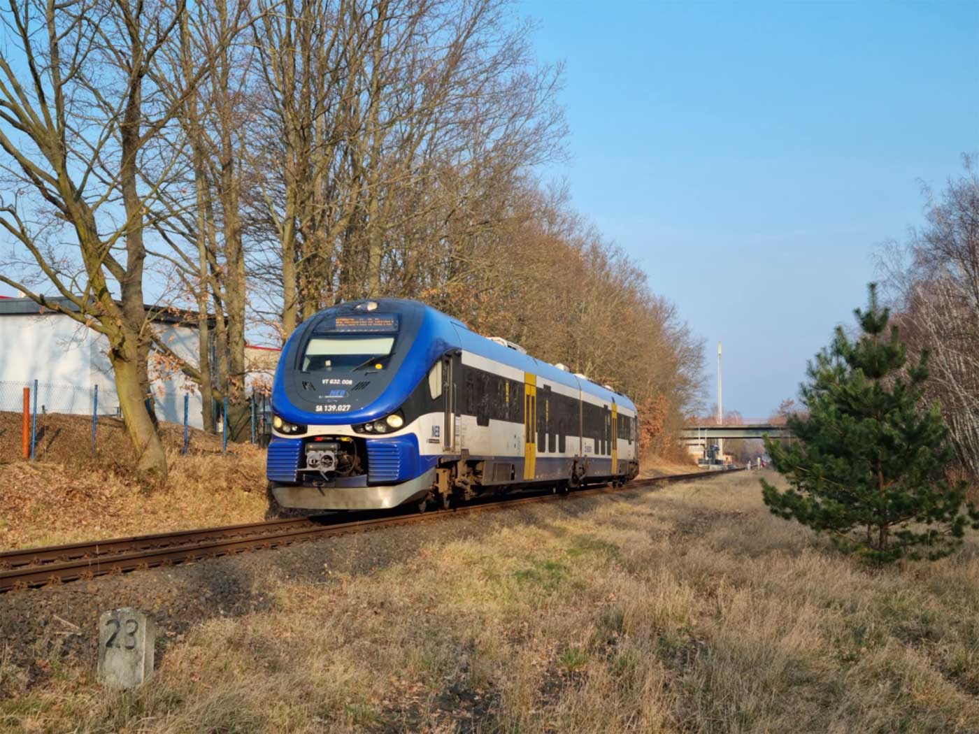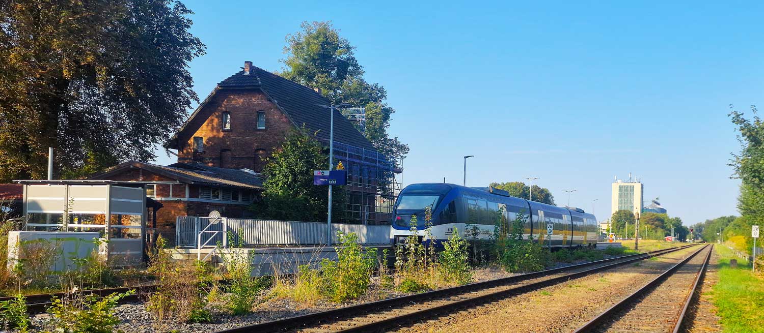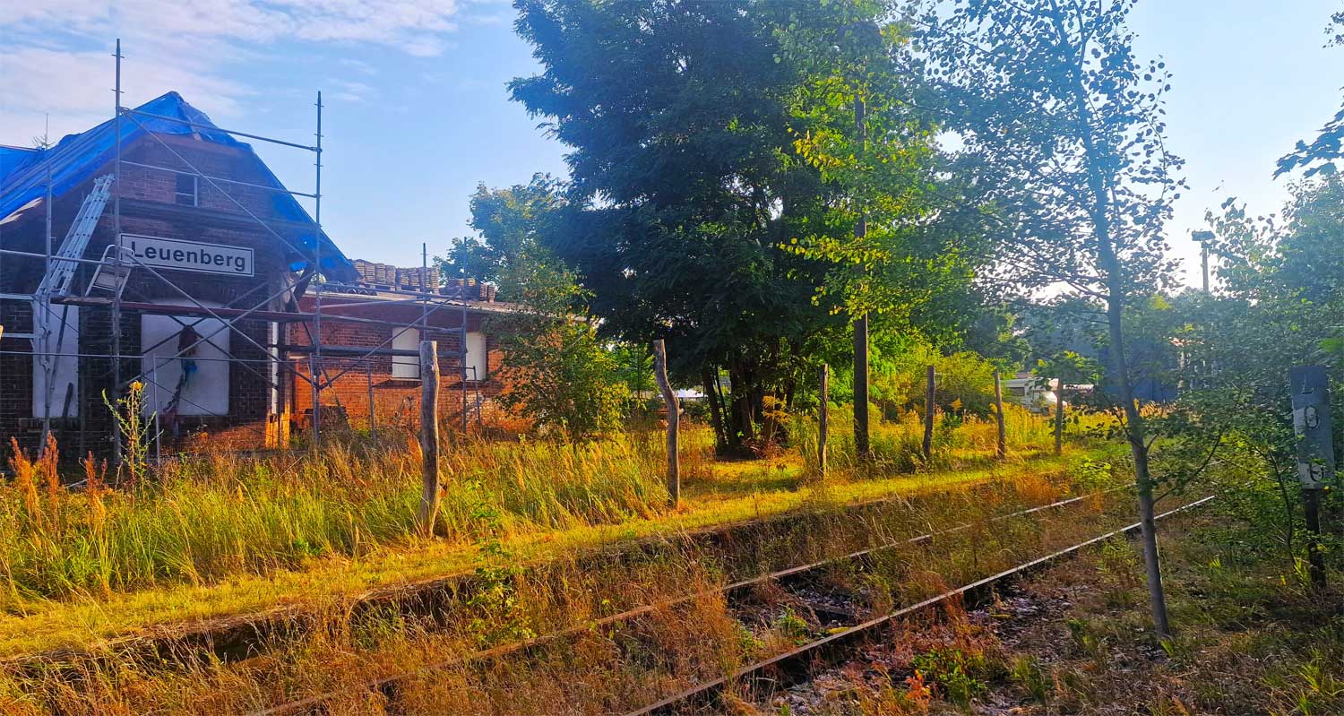 Links abgehend die ehemalige Trasse der Wriezener Bahn