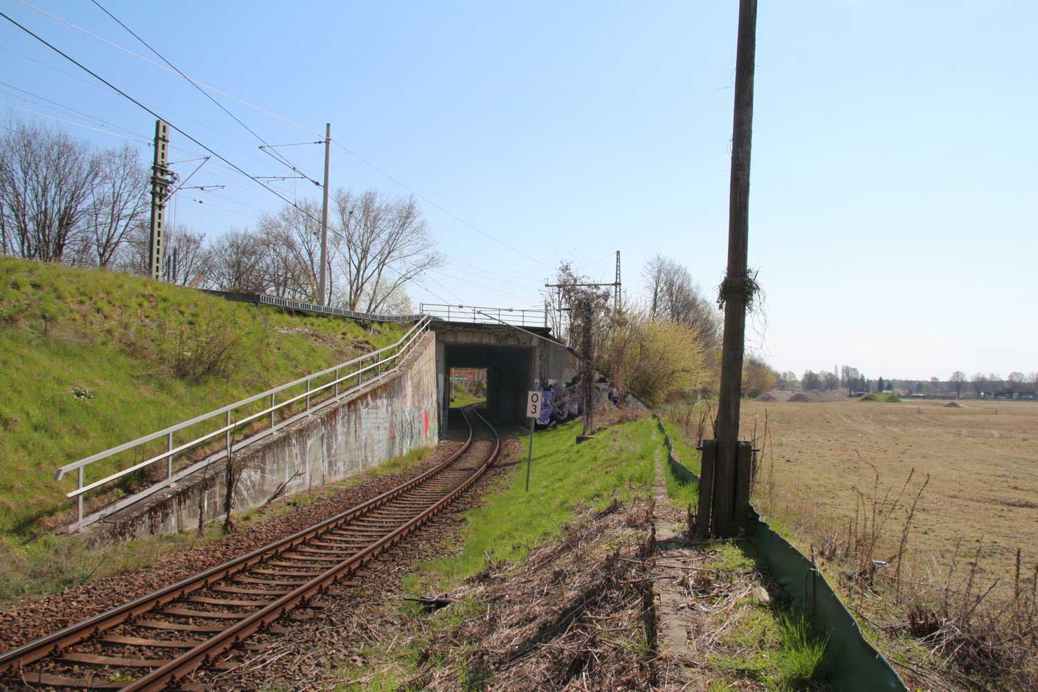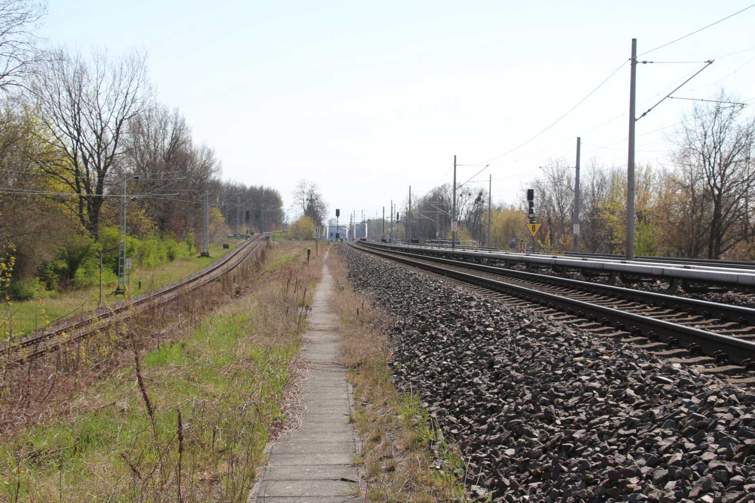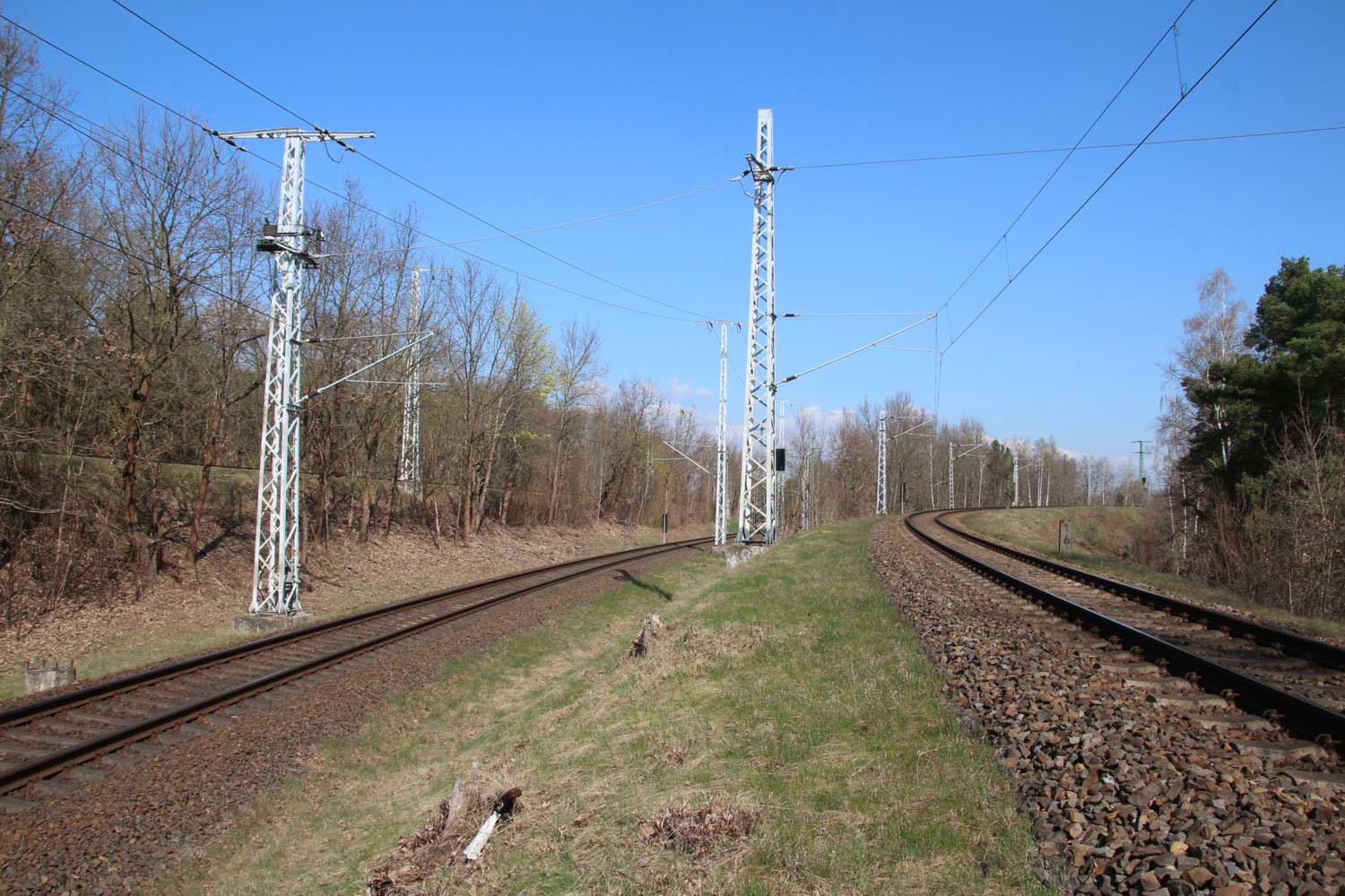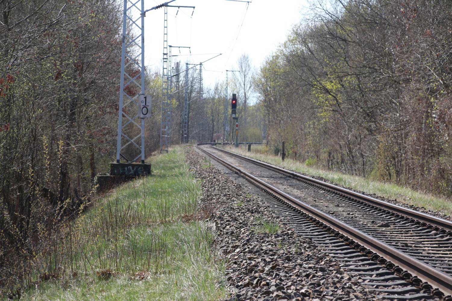 km 11,4 Rechts die beiden Gleise der Görlitzer Bahn (6142) mit km