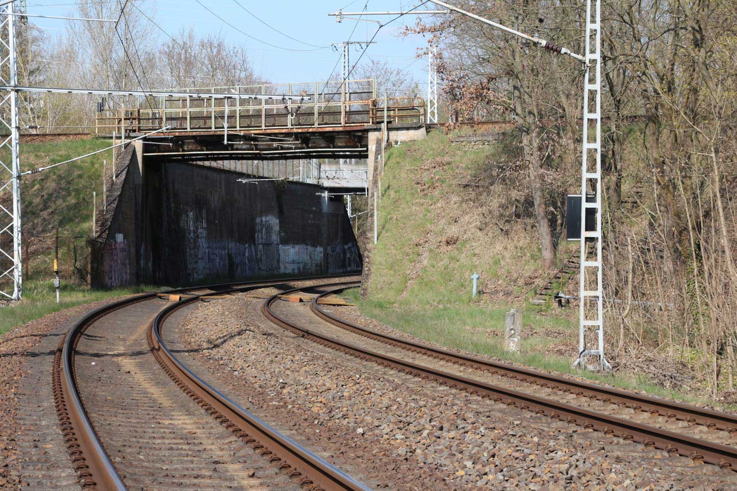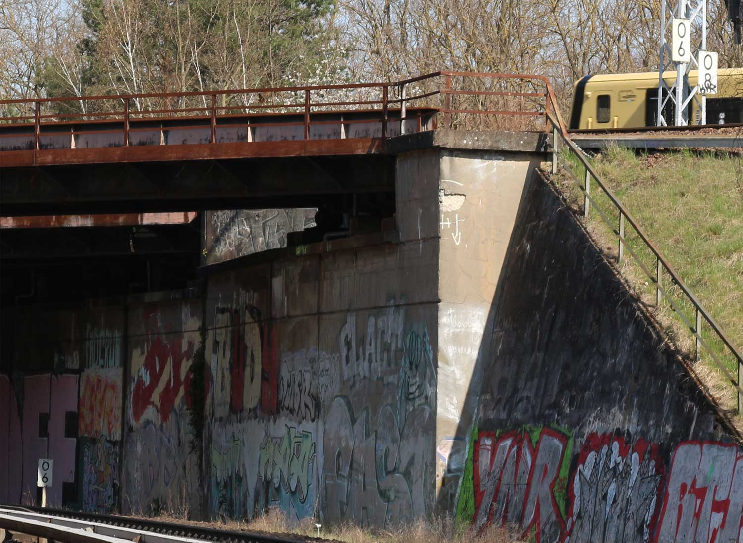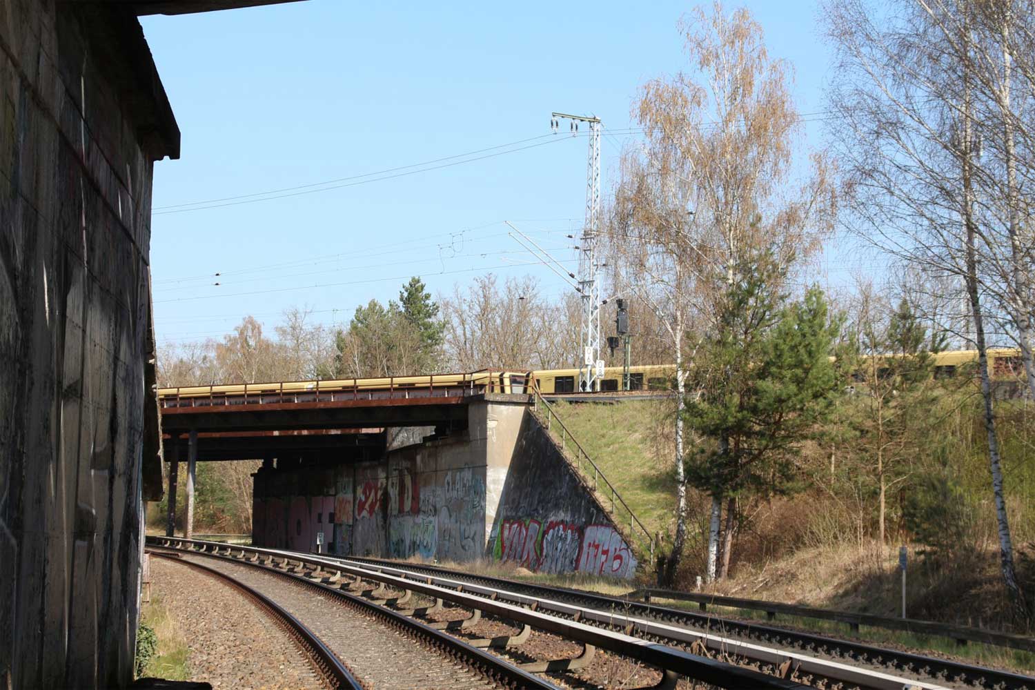 km 12,4 gehört zum Richtungsgleis der Görlitzer Bahn (6142) Über die vordere Brücke führt das Gegenrichtungsgleis (lange