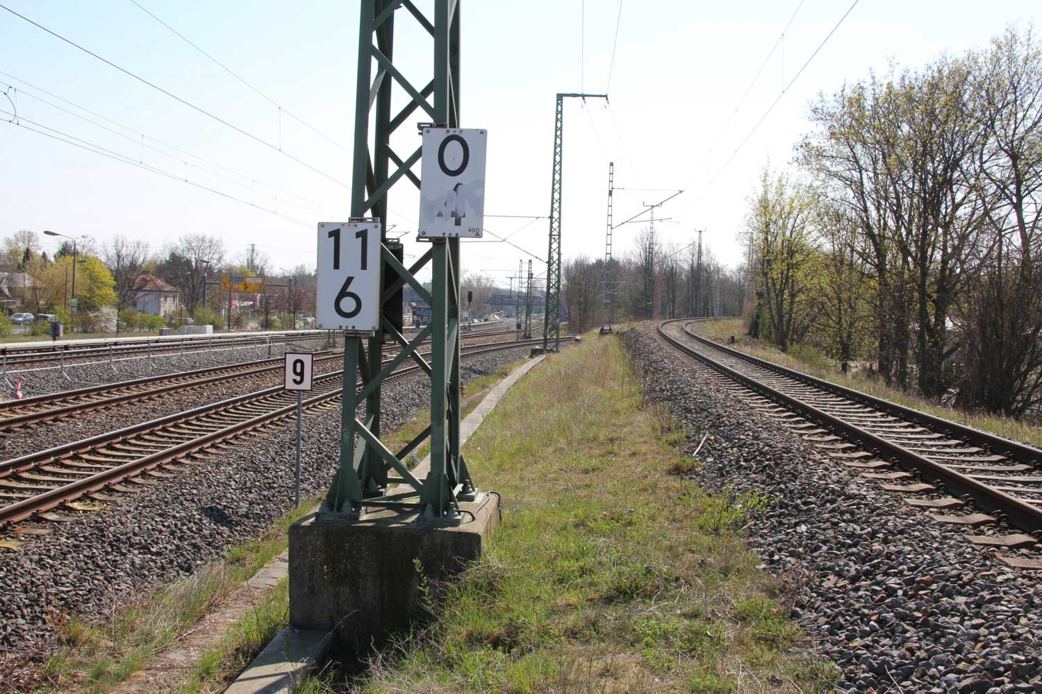 km 10,2 (am Oberleitungsmast) gehört zur Görlitzer Bahn (6142)