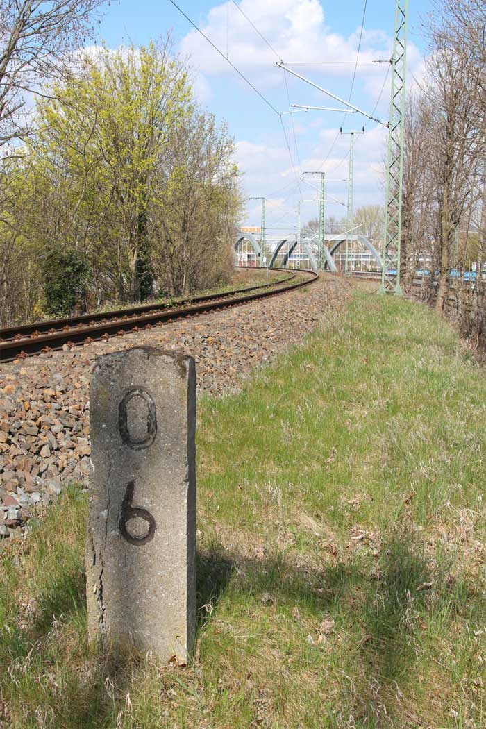 km 0,6 (Tafel) und km 0,7 (Stein) zwischen Berlin-Grünau und Abzw Grünauer Kreuz