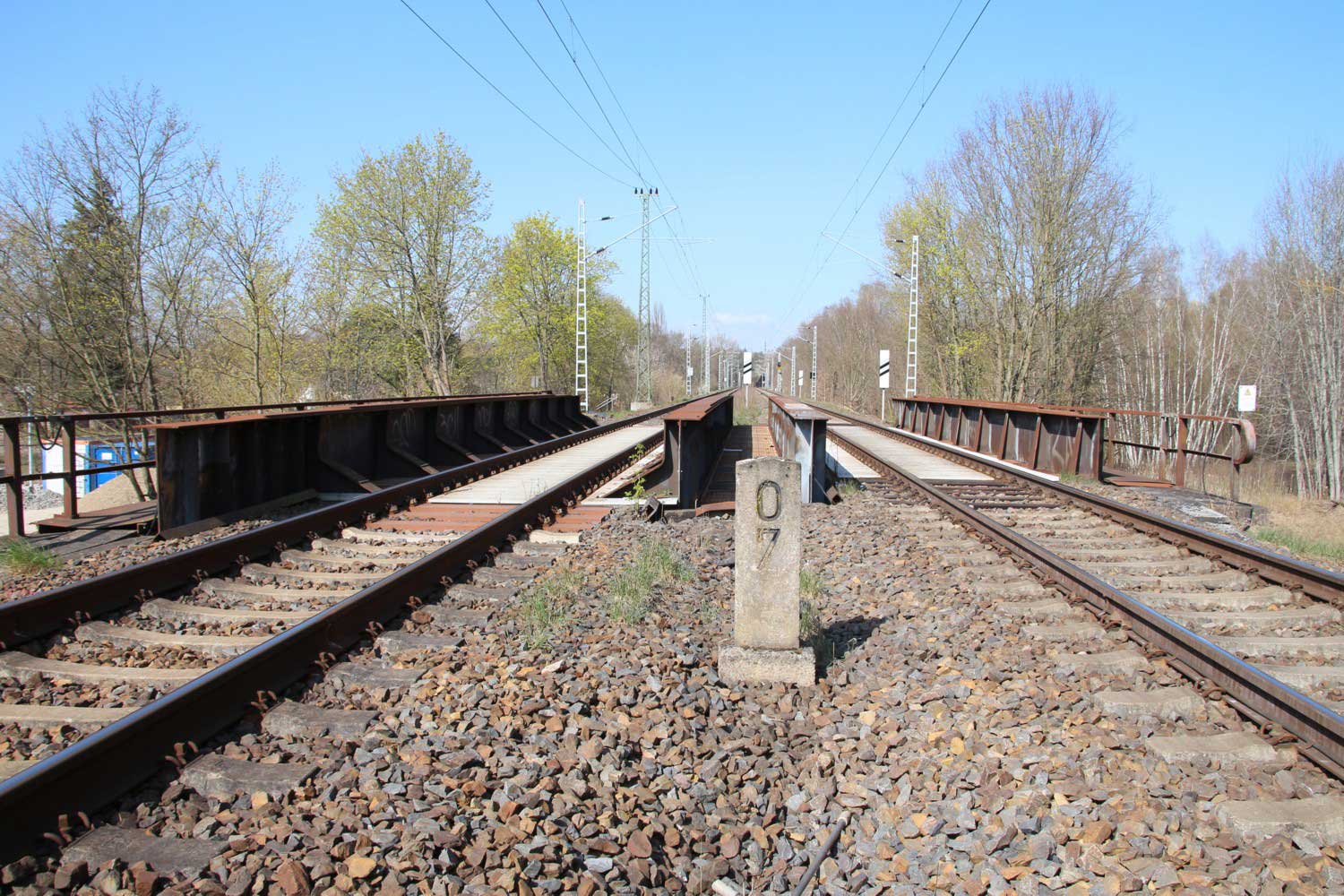 km 12,4 gehört zum Richtungsgleis der Görlitzer Bahn (6142) Über die Brücke führt das Gegenrichtungsgleis (lange