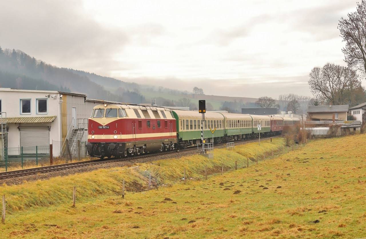 Adorf (Vogtl) 114,47 km 33,14 der Strecke Plauen (Vogtl) ob Bf 0,40 - Adorf (Vogtl) 33,14 - Grenze Deutschland/Tschechoslowakei (mehrmaliger Wechsel) - Cheb (Eger) 74,49 (PE)