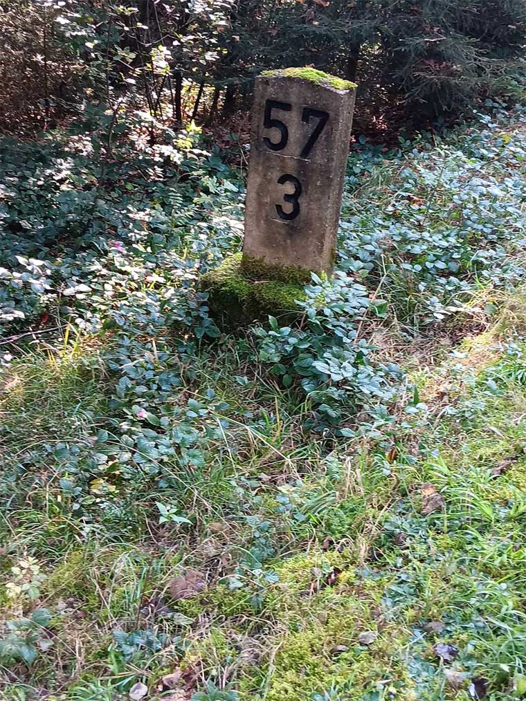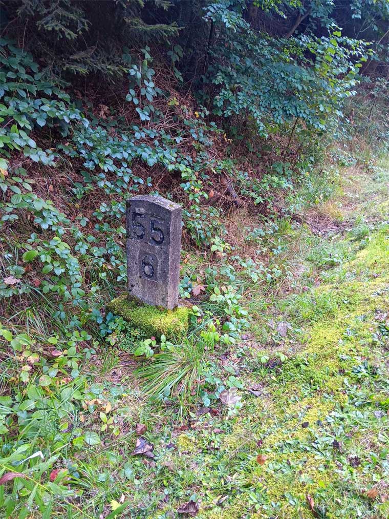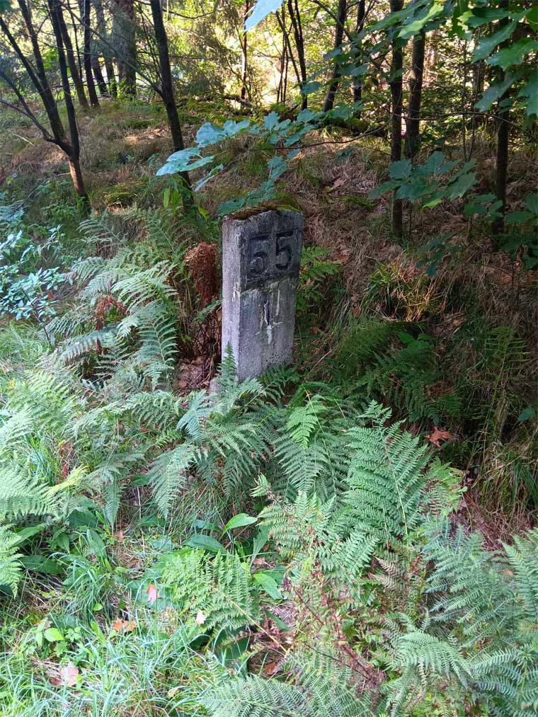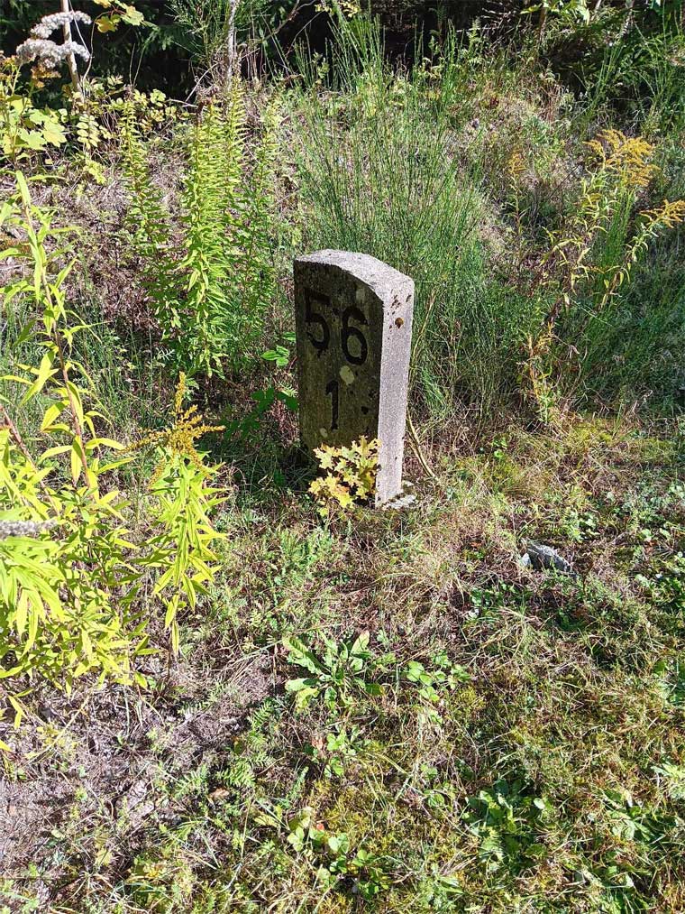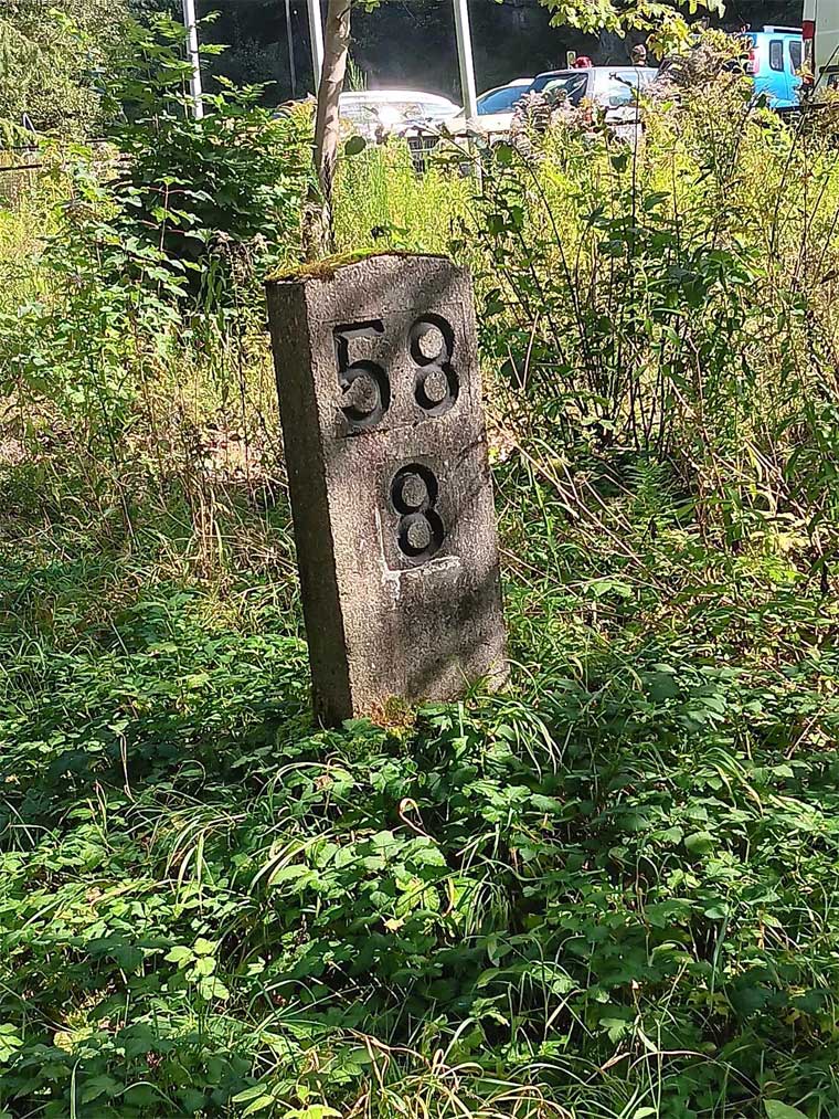 Davor der alte Myriameterstein 6 mit oben angebrachter Zahl 600 hm.