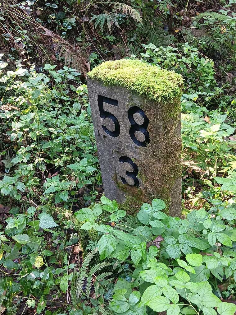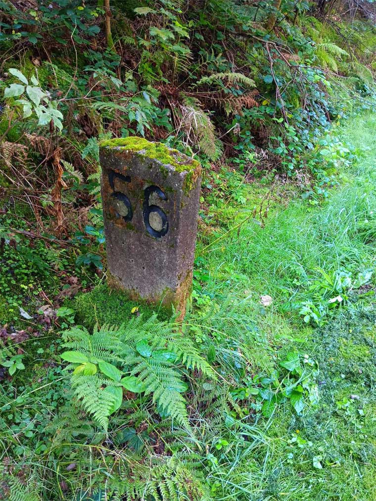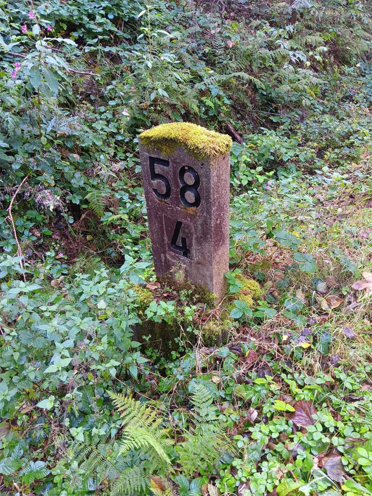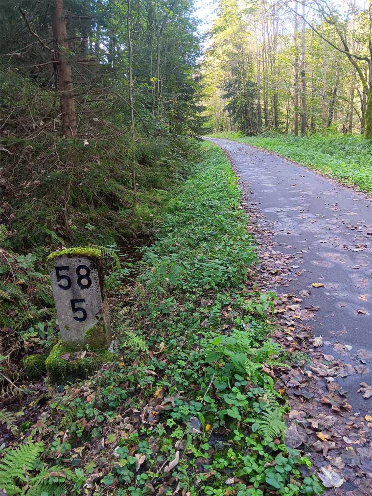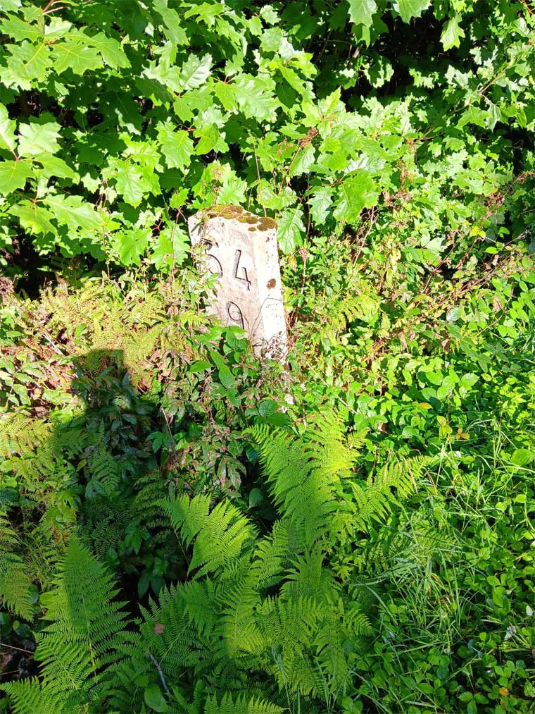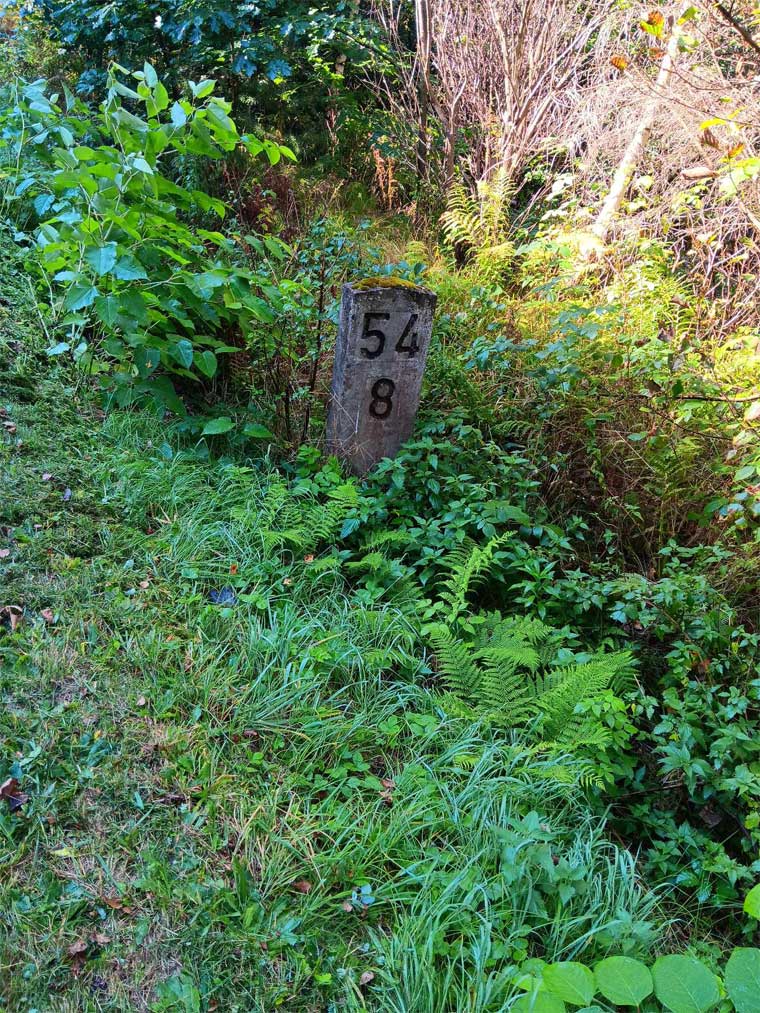 Davor der alte Myriameterstein 6 mit oben angebrachter Zahl 600 hm.