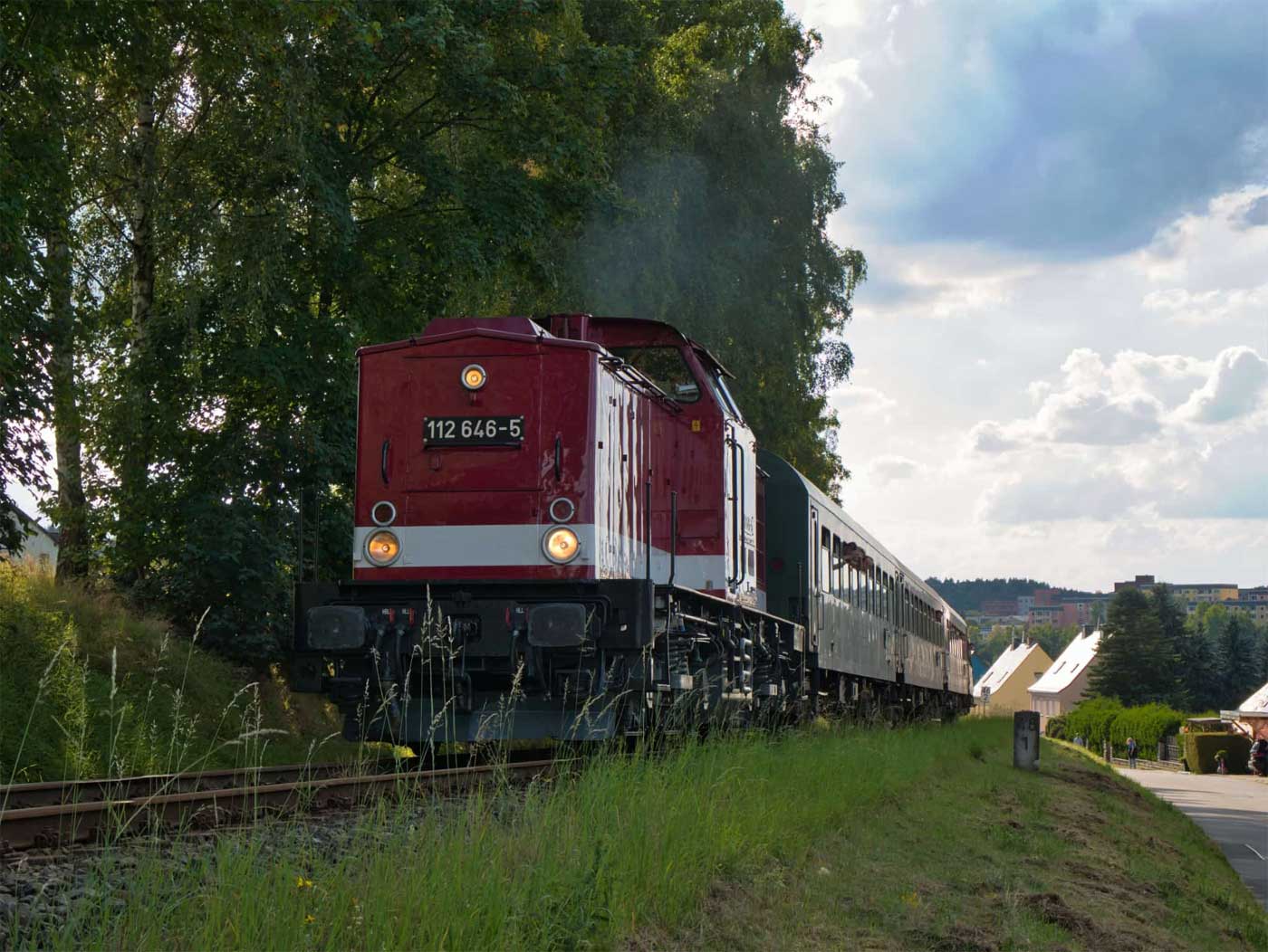 Adorf (Vogtl) 114,47 km 33,14 der Strecke Plauen (Vogtl) ob Bf 0,40 - Adorf (Vogtl) 33,14 - Grenze Deutschland/Tschechoslowakei (mehrmaliger Wechsel) - Cheb (Eger) 74,49 (PE)