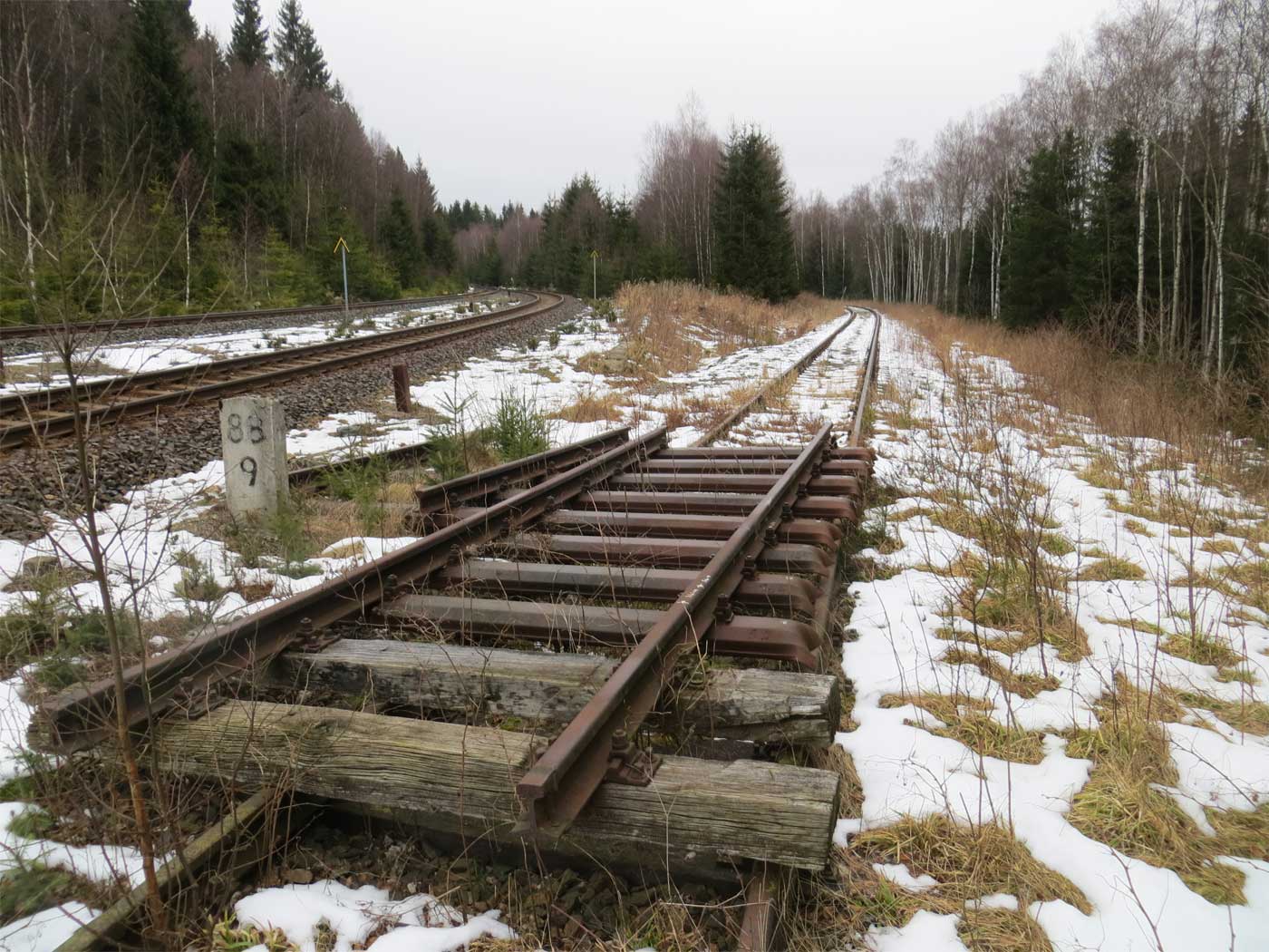 km 34,30 der Strecke Wilkau-Haßlau -0,21 - Schönheide Süd 34,303 - Carlsfeld 41,634 (WCd) Spurweite 750 mm