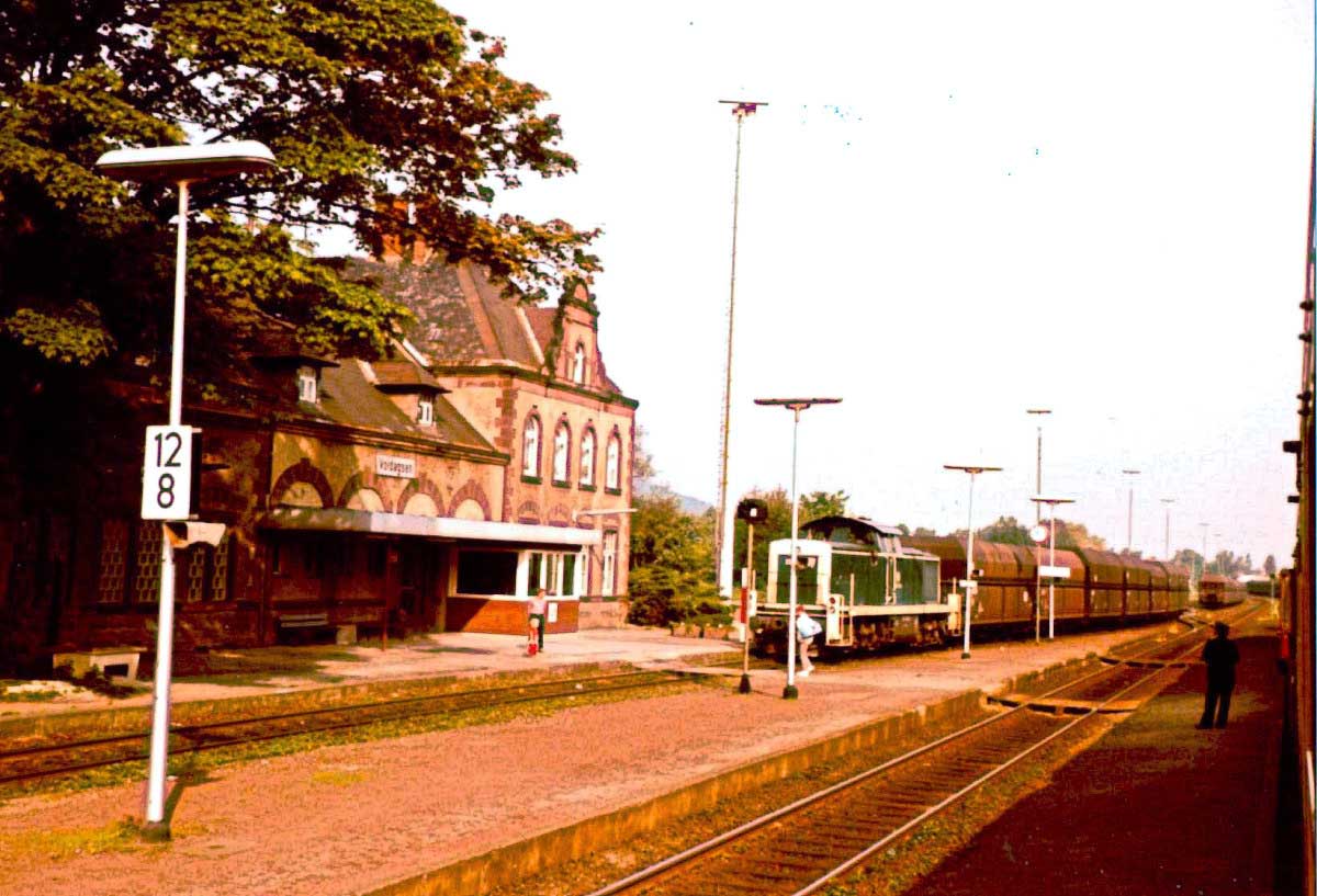 | Vlotho | 69,49 | km 40,4 der Strecke Wallenbrück 0,0 - Herford Kleinbf 17,9 - Bad Salzuflen Kleinbf 24,8 - Vlotho Kleinbf 38,9 - Vlotho Reichsbf 40,4 und Zweigstrecke nach Vlotho Westhafen (Herforder Kleinbahnen GmbH) Spurweite 1000 mm, elektrisch betrieben mit 1500 V GS |