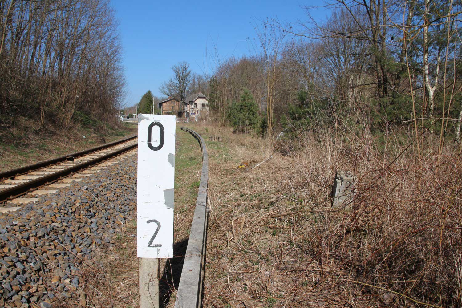 km 0,2 (Tafel und Stein) in Grunow (Niederlausitz) - Blick Richtung Streckenanfang