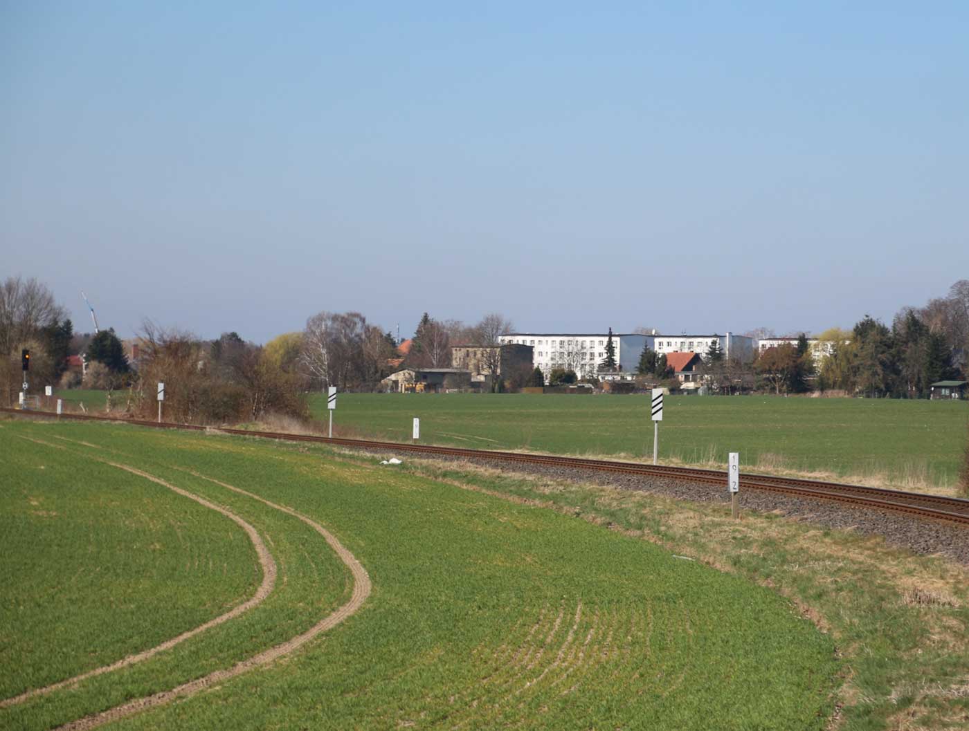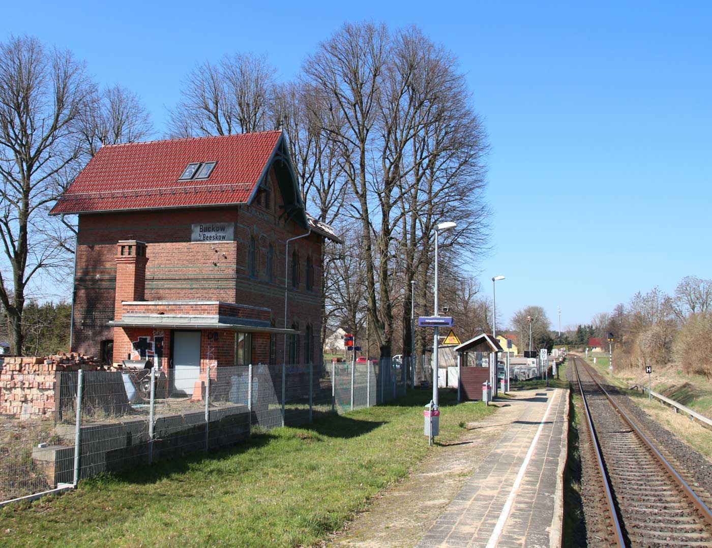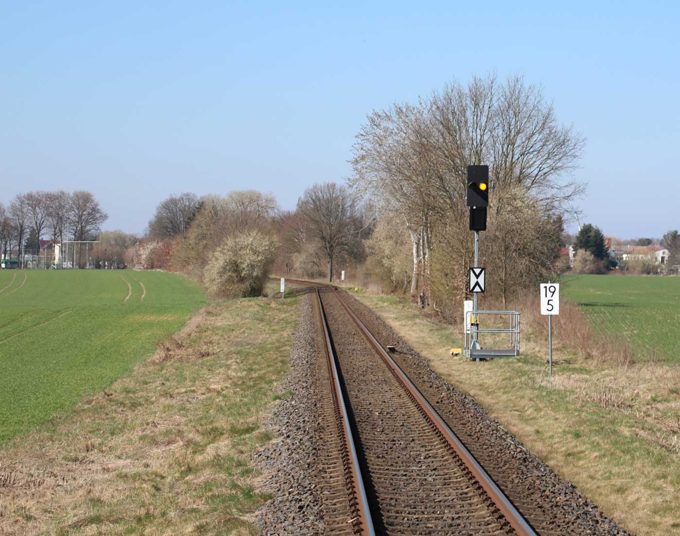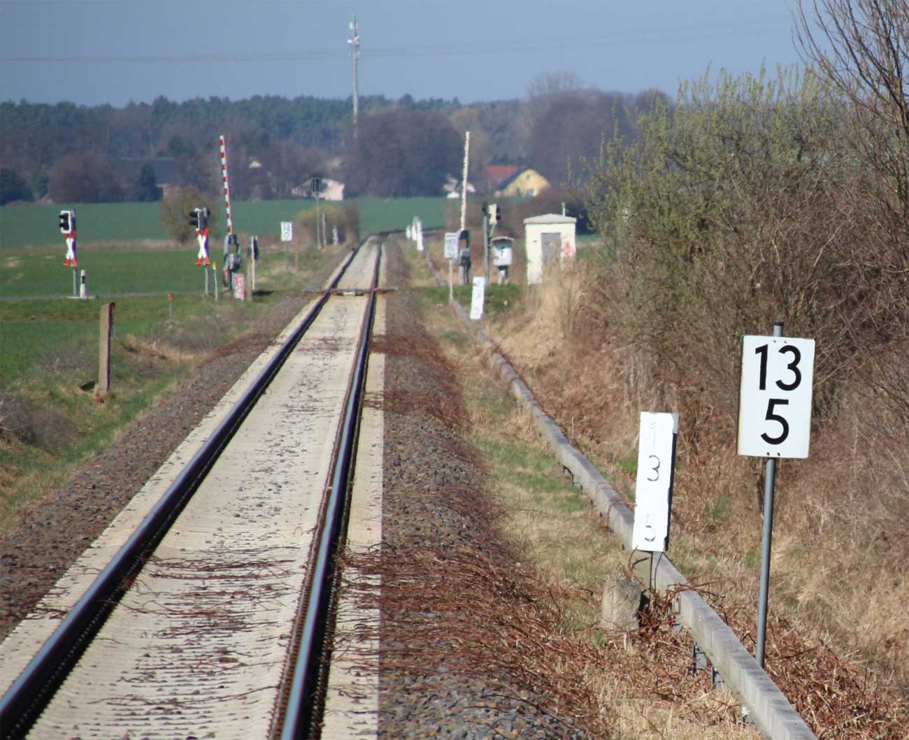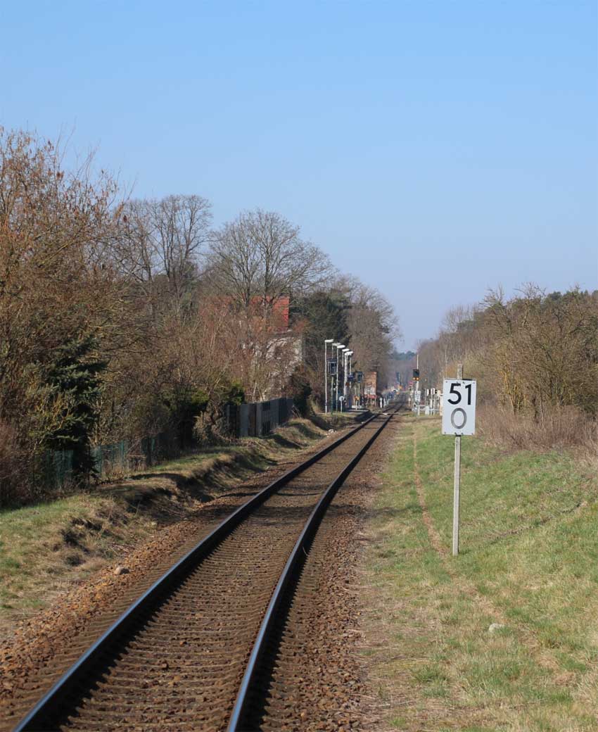 | km 113,662 der Strecke Falkenberg (Elster) 0,31 - Luckau-Uckro 49,40 - Lübben (Spreewald) 73,52 - Tauche (b Beeskow) 105,45 - Streckenunterbrechung - Beeskow 113,66 (6826) | ||