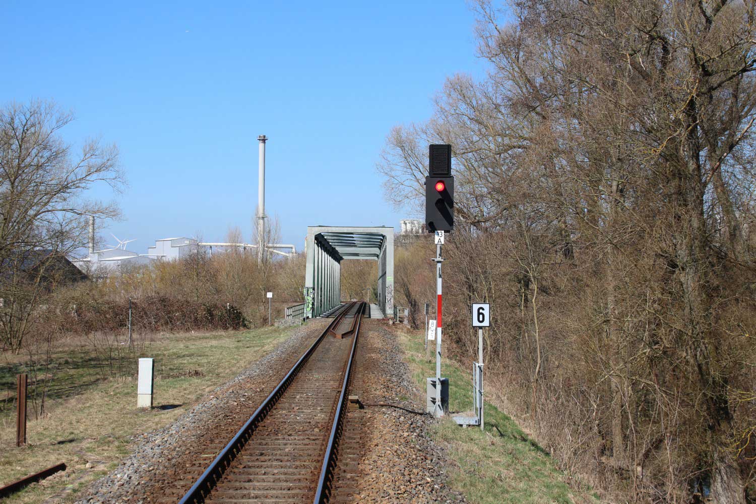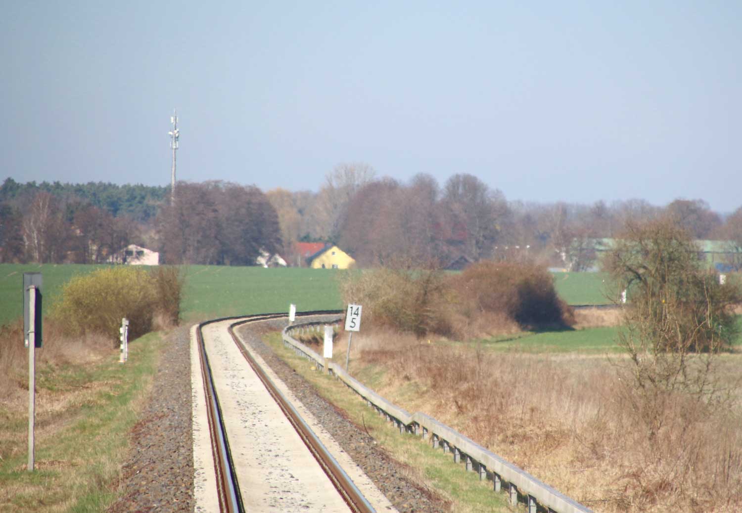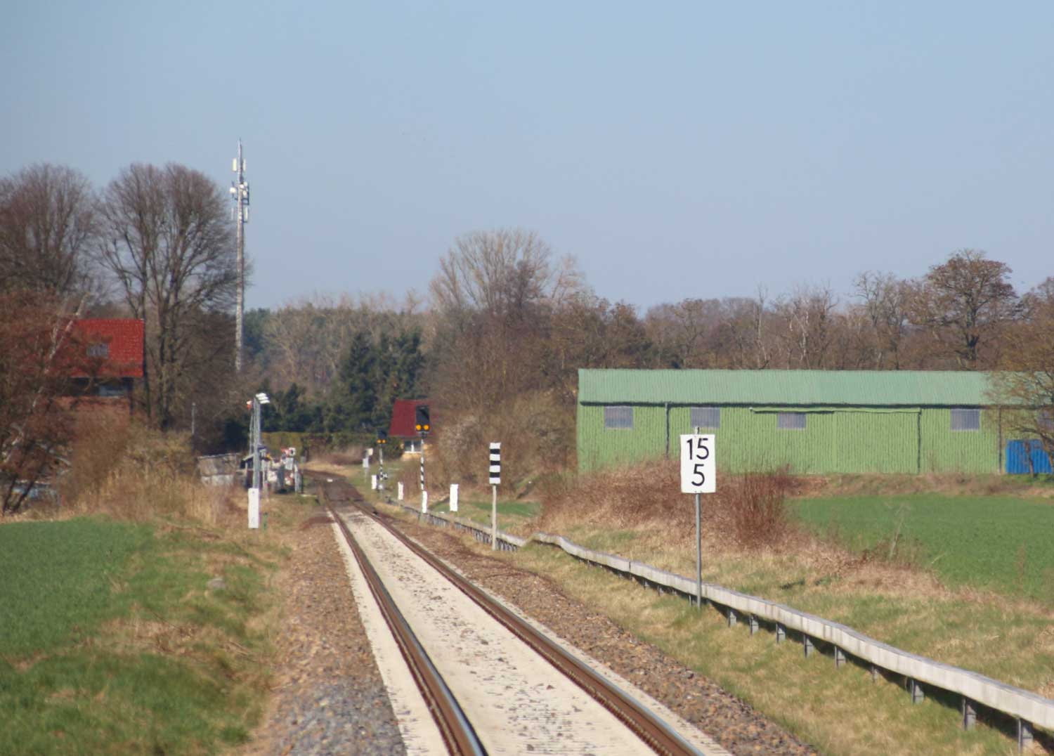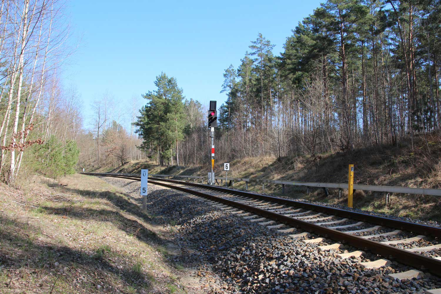 | km 113,662 der Strecke Falkenberg (Elster) 0,31 - Luckau-Uckro 49,40 - Lübben (Spreewald) 73,52 - Tauche (b Beeskow) 105,45 - Streckenunterbrechung - Beeskow 113,66 (6826) | ||