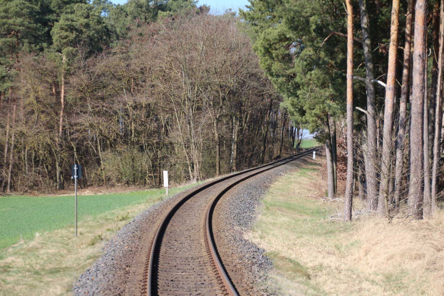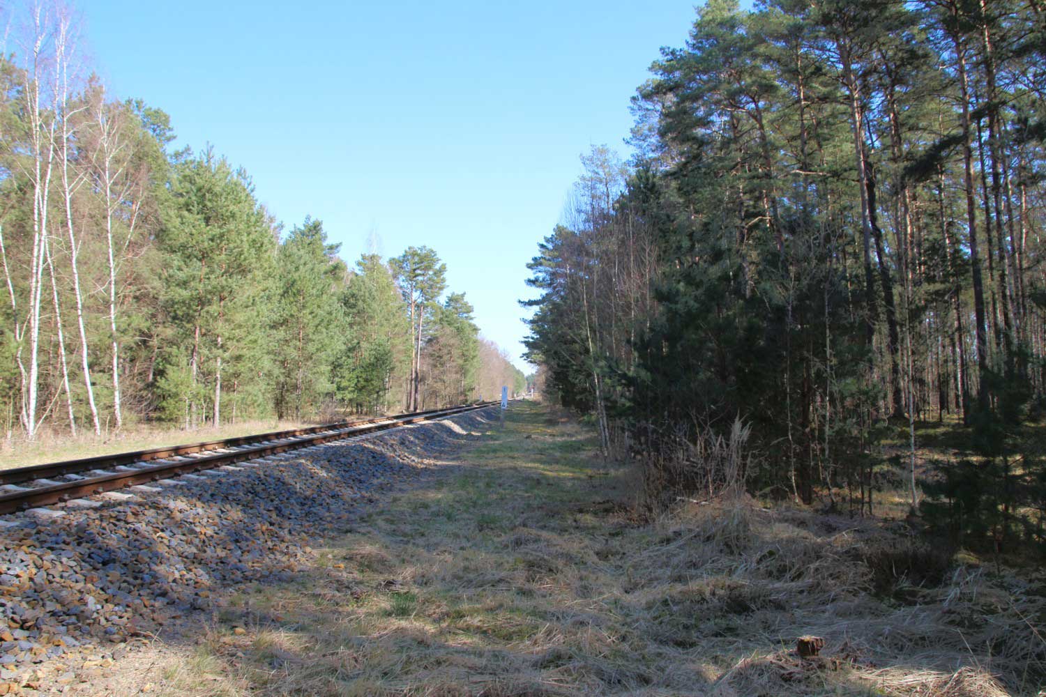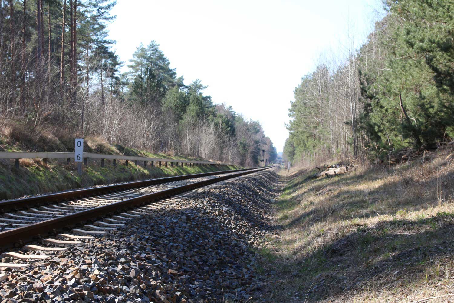 km 1,0 zwischen Grunow (Niederlausitz) und Schneeberg (Mark) am ehemaligen Abzw Grunow (Niederlausitz) - Blick Richtung Grunow (Niederlausitz)