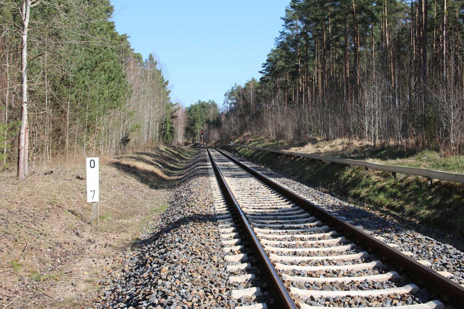km 0,2 in Grunow (Niederlausitz) - Blick Richtung Streckenanfang