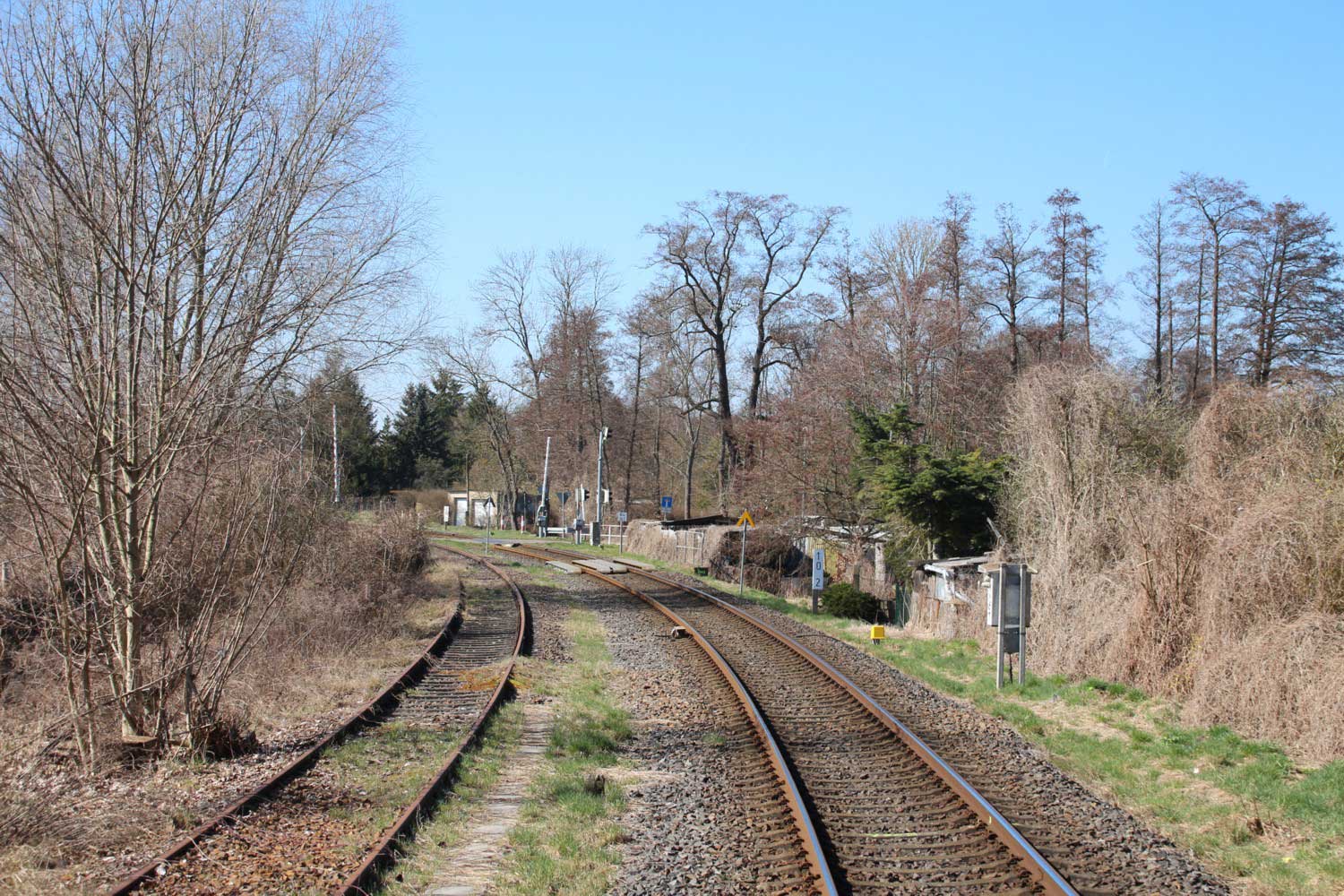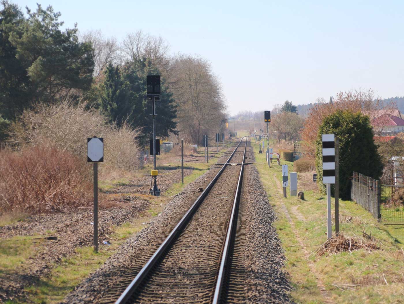 | km 113,662 der Strecke Falkenberg (Elster) 0,31 - Luckau 57,39 - Beeskow 113,662 [Niederlausitzer Eisenbahn (NLE)] | ||
