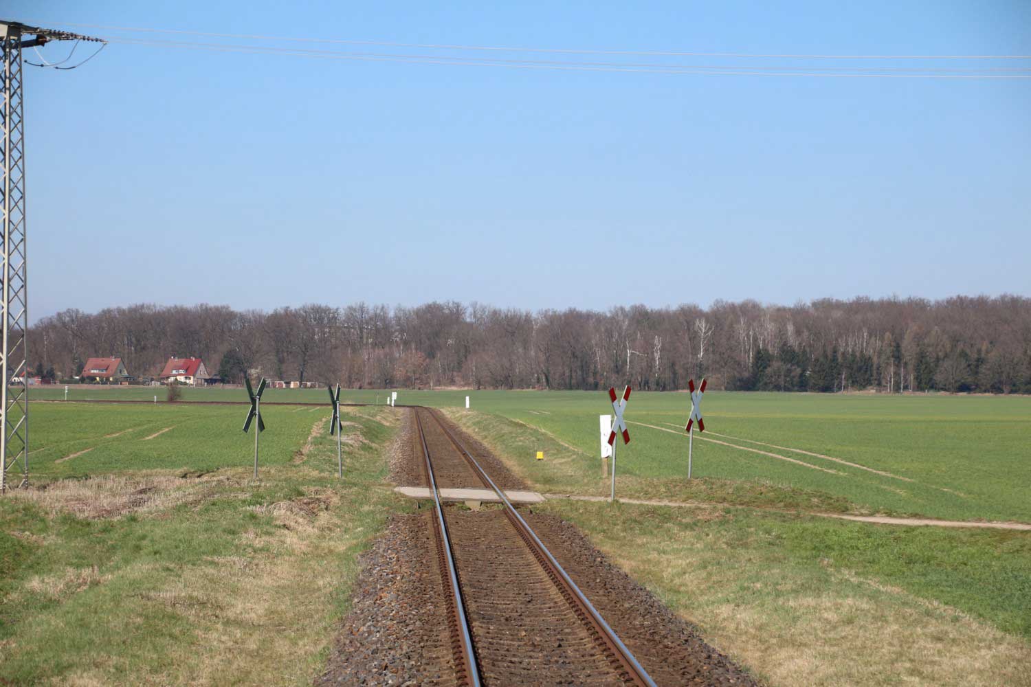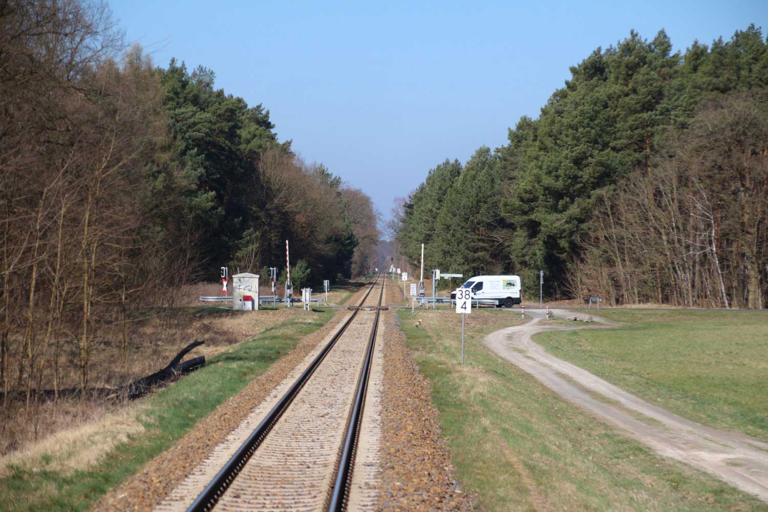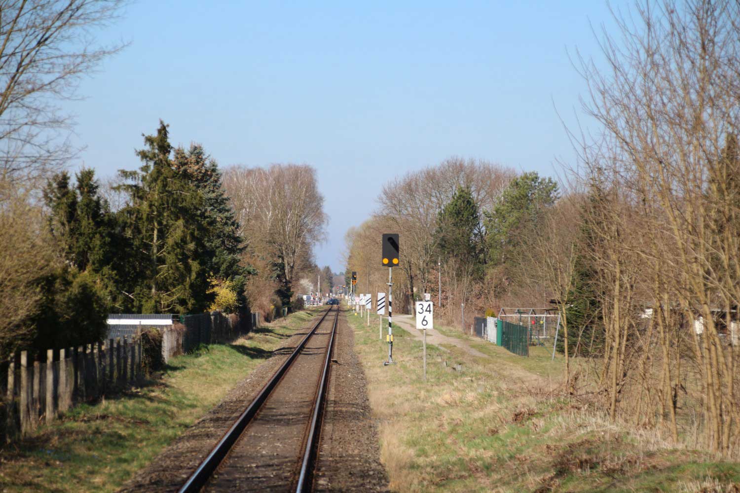 BÜ km 3,6 in Schneeberg (Mark) - Blick Richtung Königs Wusterhausen