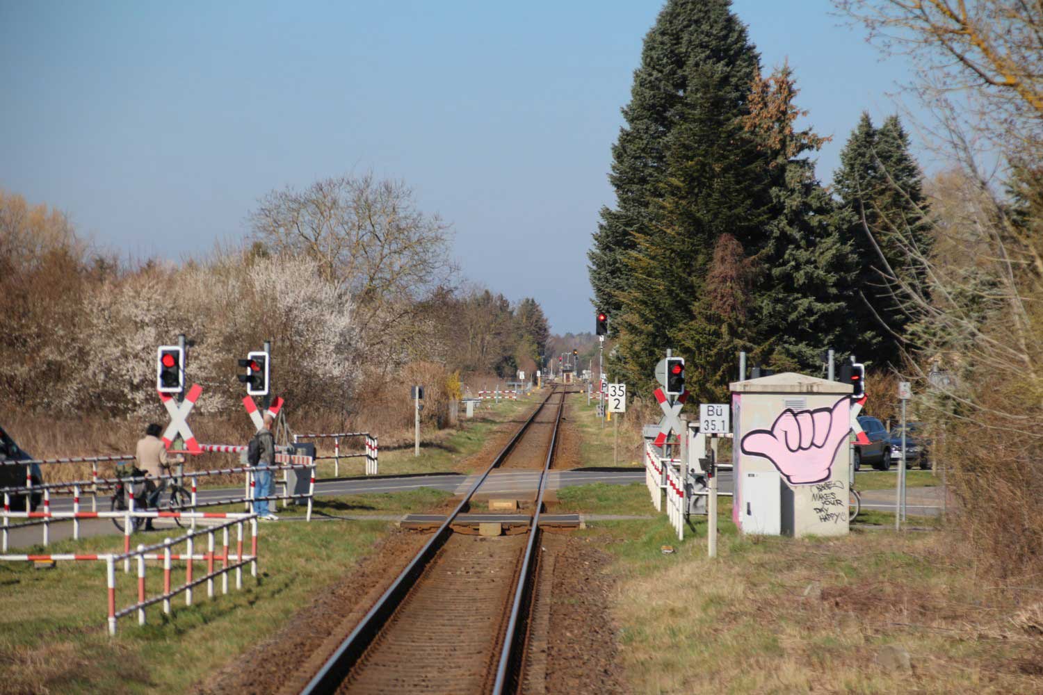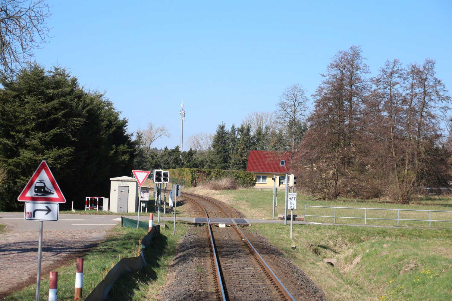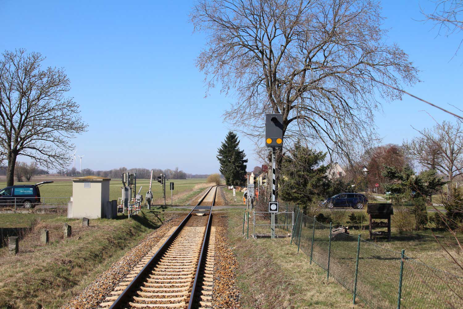 BÜ km 3,6 in Schneeberg (Mark) - Blick Richtung Königs Wusterhausen