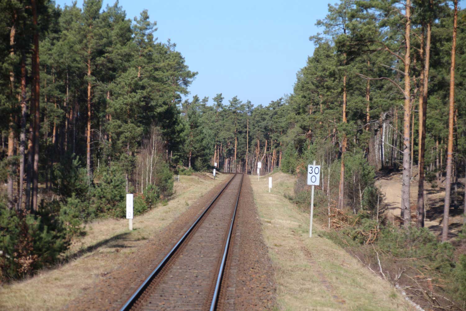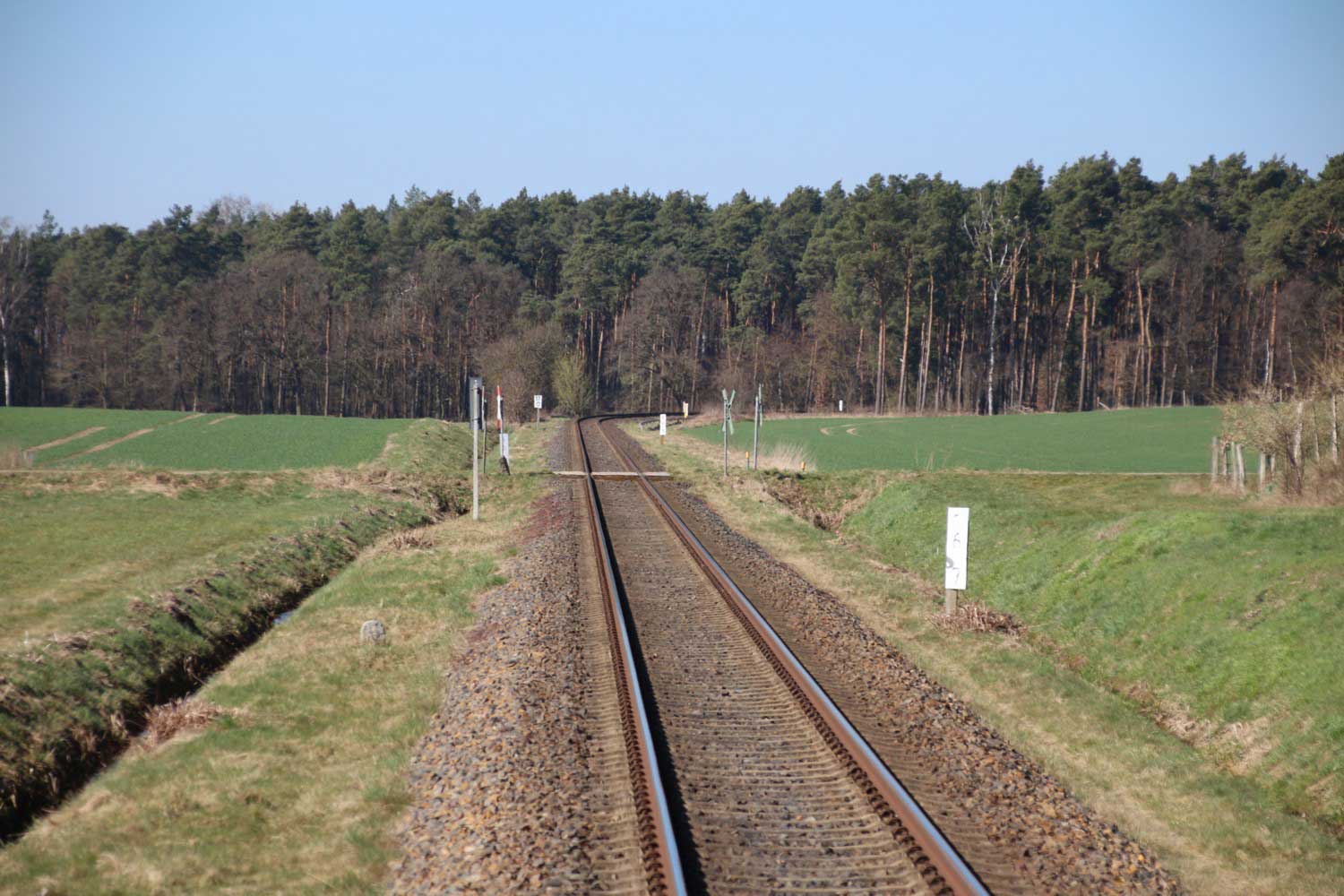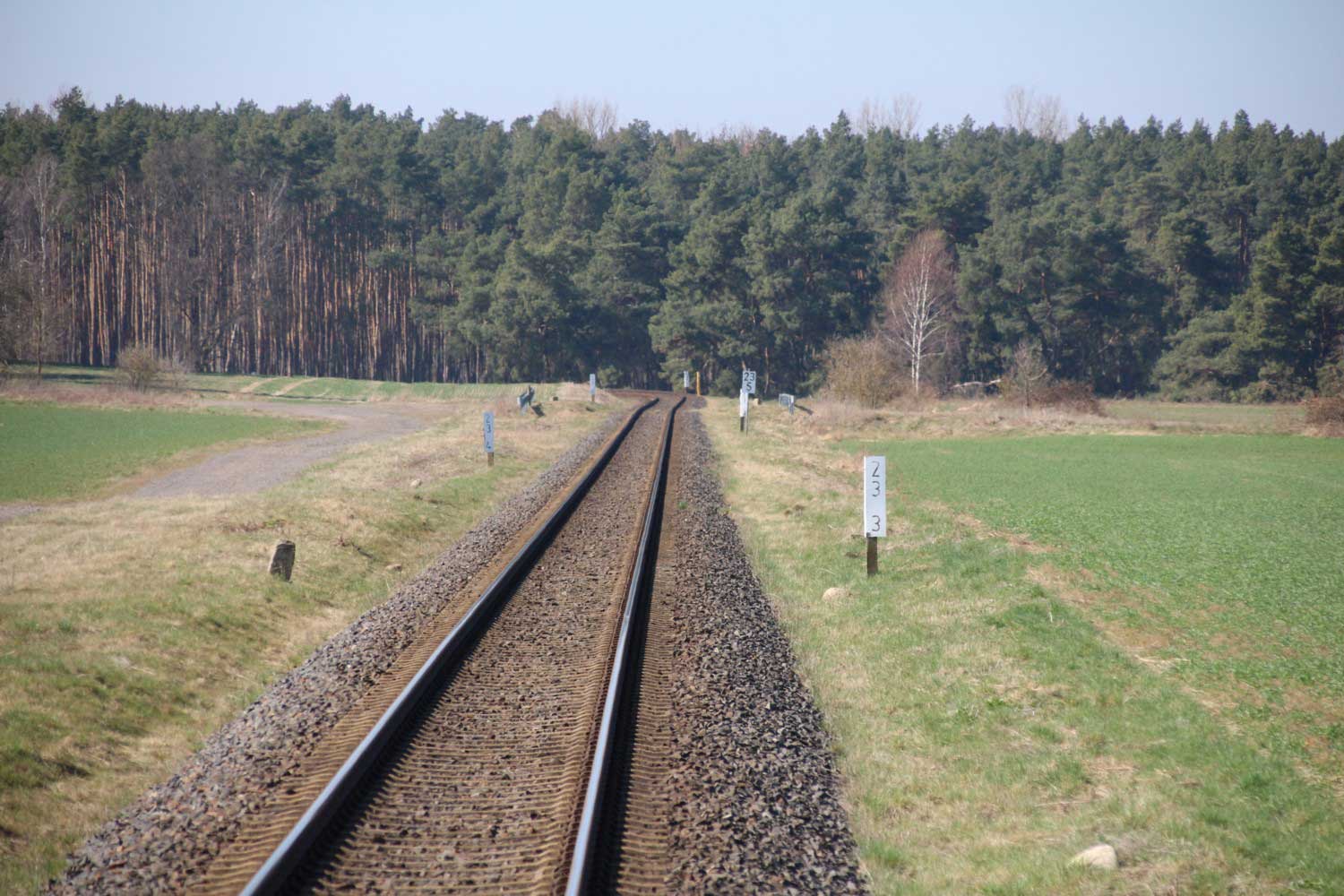 km 32,2 zwischen Wendisch Rietz (früher: Scharmützelsee) und Hubertushöhe - Blick Richtung Königs Wusterhausen