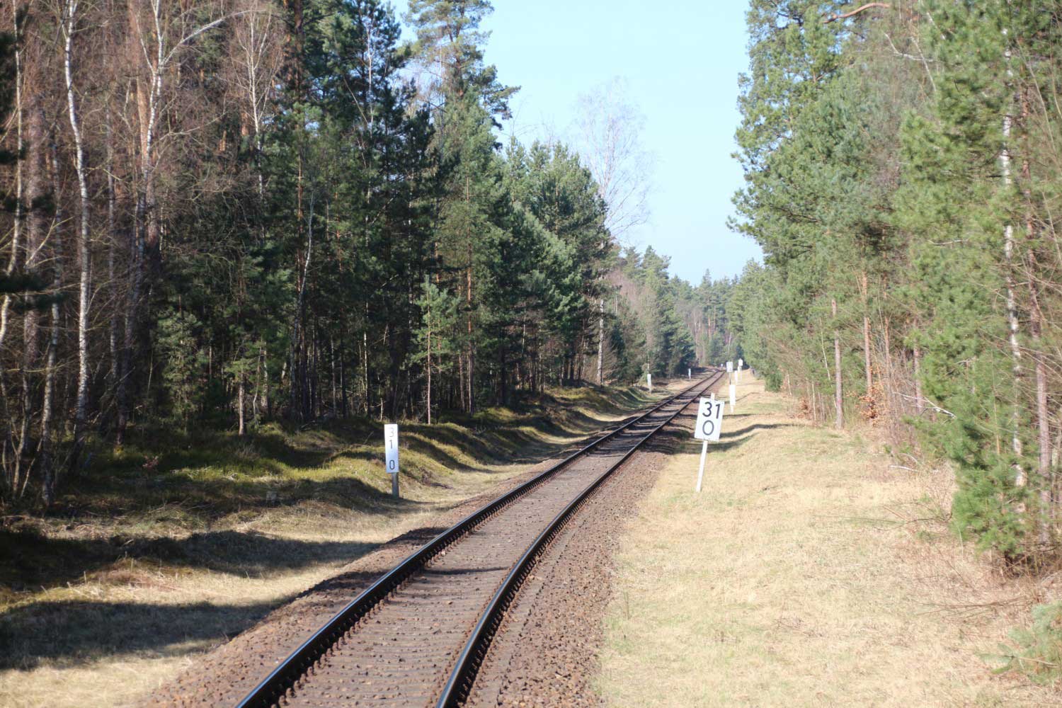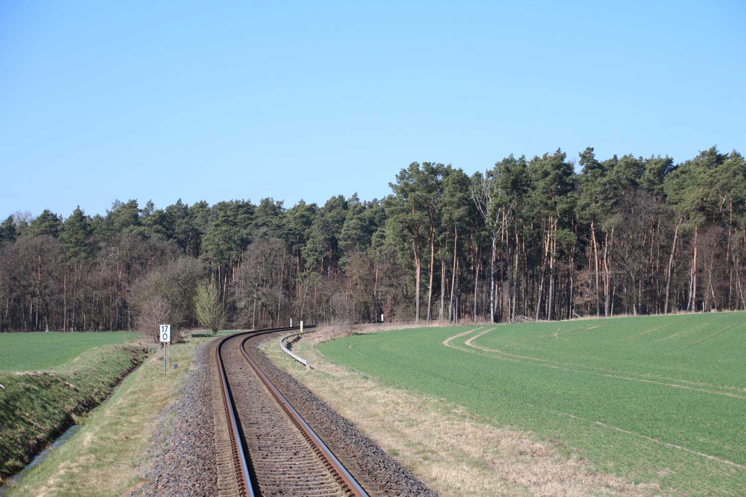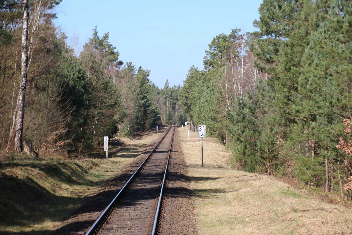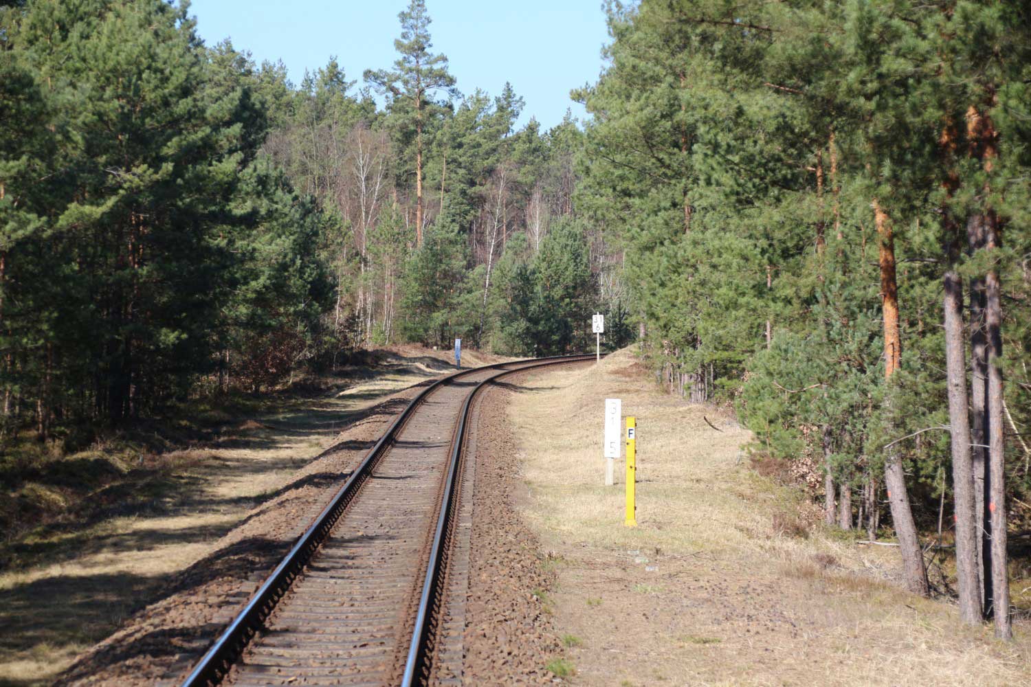 km 32,2 zwischen Wendisch Rietz (früher: Scharmützelsee) und Hubertushöhe - Blick Richtung Königs Wusterhausen