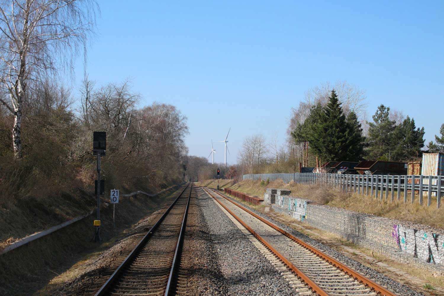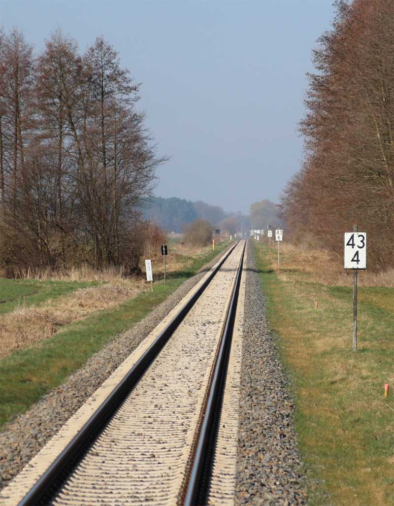 km 57,8 (links) in Königs Wusterhausen - Blick Richtung Streckenende