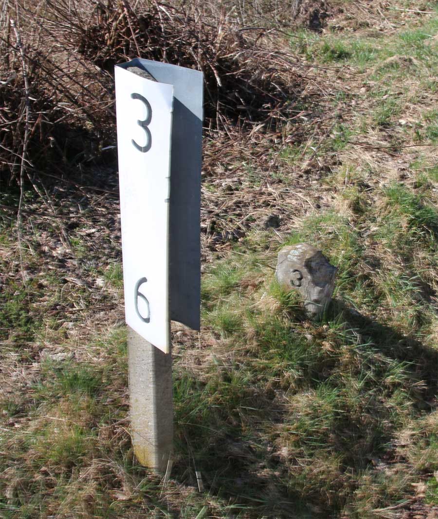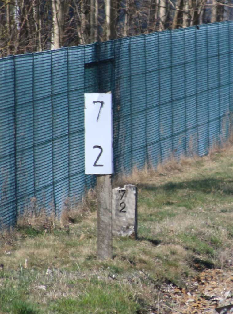 km 52,5 (Stein) und km 52,6 (Tafel) in Zernsdorf - Blick Richtung Königs Wusterhausen