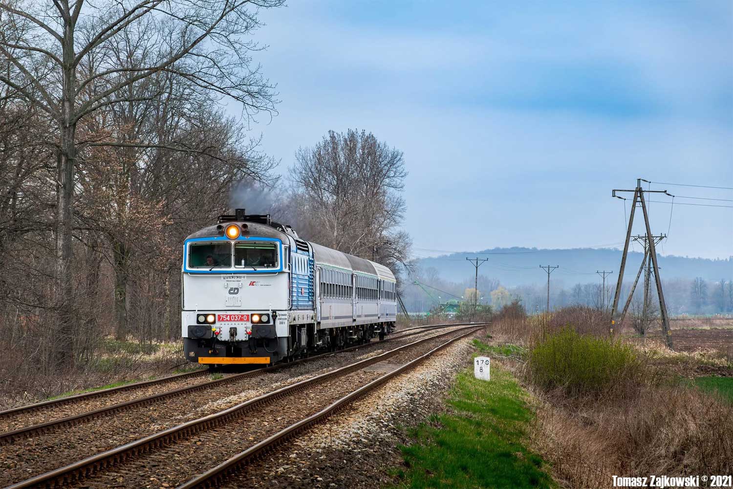 Wrocław Główny (Breslau Hbf) 0,0 - Kamieniec Ząbkowicki [Kamenz (Schles)] 71,886 - Kłodzko Główne (Glatz Hbf) 93,481 - Międzylesie (Mittelwalde) 129,950 - Staatsgrenze Polen/Tschechien 136,064 = [km 113,243 - Lichkov (Lichtenau) 110,821 - Jablonné nad Orlicķ (Gabel a.d. Adler) 99,272 - Tżnitě nad Orlicķ (Tinischt) 49,782 - Hradec Krįlové hl. n. (deutsch Königgrätz) 27,959 - Chlumec nad Cidlinou (Chlumetz an der Zidlina) 0,0]