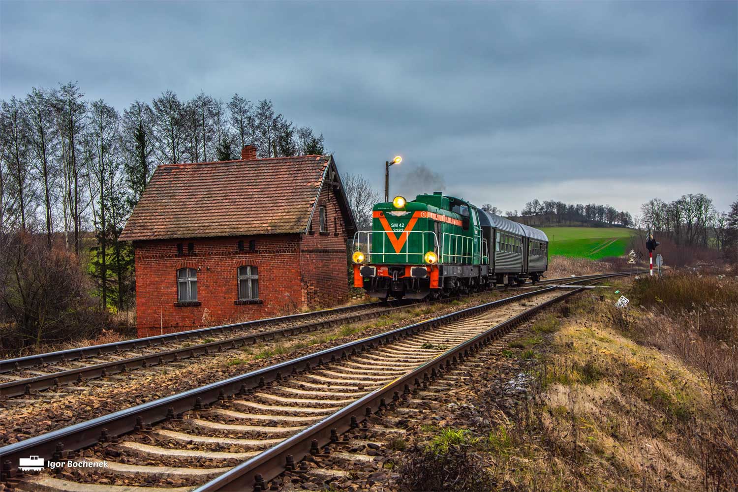 km 172,2 (rechter Bildrand) in Doboszowice (Hertwigswalde) - SM42-2253