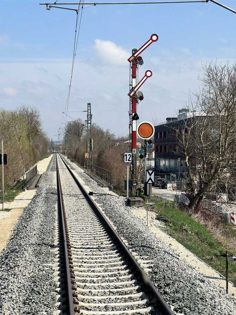 | Von 1990 bis 1995 wurde die Anbindung der Strecke Ingolstadt Hbf 0,0 - Donauwörth 52,84 - Neuoffingen 96,81 zwischen dem Hauptbahnhof Ingolstadt und Weichering vollständig neu trassiert. Fuhren die Züge Richtung Donauwörth zuvor nördlich aus dem Bahnhof heraus und in einer Schleife quer durch die Stadt, erfolgt heute die Fahrt zunächst in südlicher Richtung über die Strecke Ingolstadt Hbf -0,74 - Augsburg-Hochzoll 61,82. Bei km 4,9 beginnt die Strecke in Richtung Weichering , um dort wieder auf das alte Planum zu kommen. |