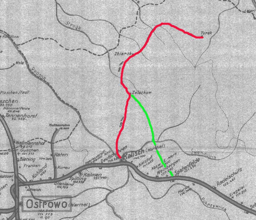 Kalisch Gaubahnhof 0,0 - Eisen (Zelazkow) 11,41 - Turek Bf 56,69