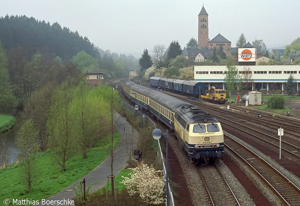 km 111,6 bei Mürlenbach - 215 029 mit D 2136 (Emden-Münster-Trier)
