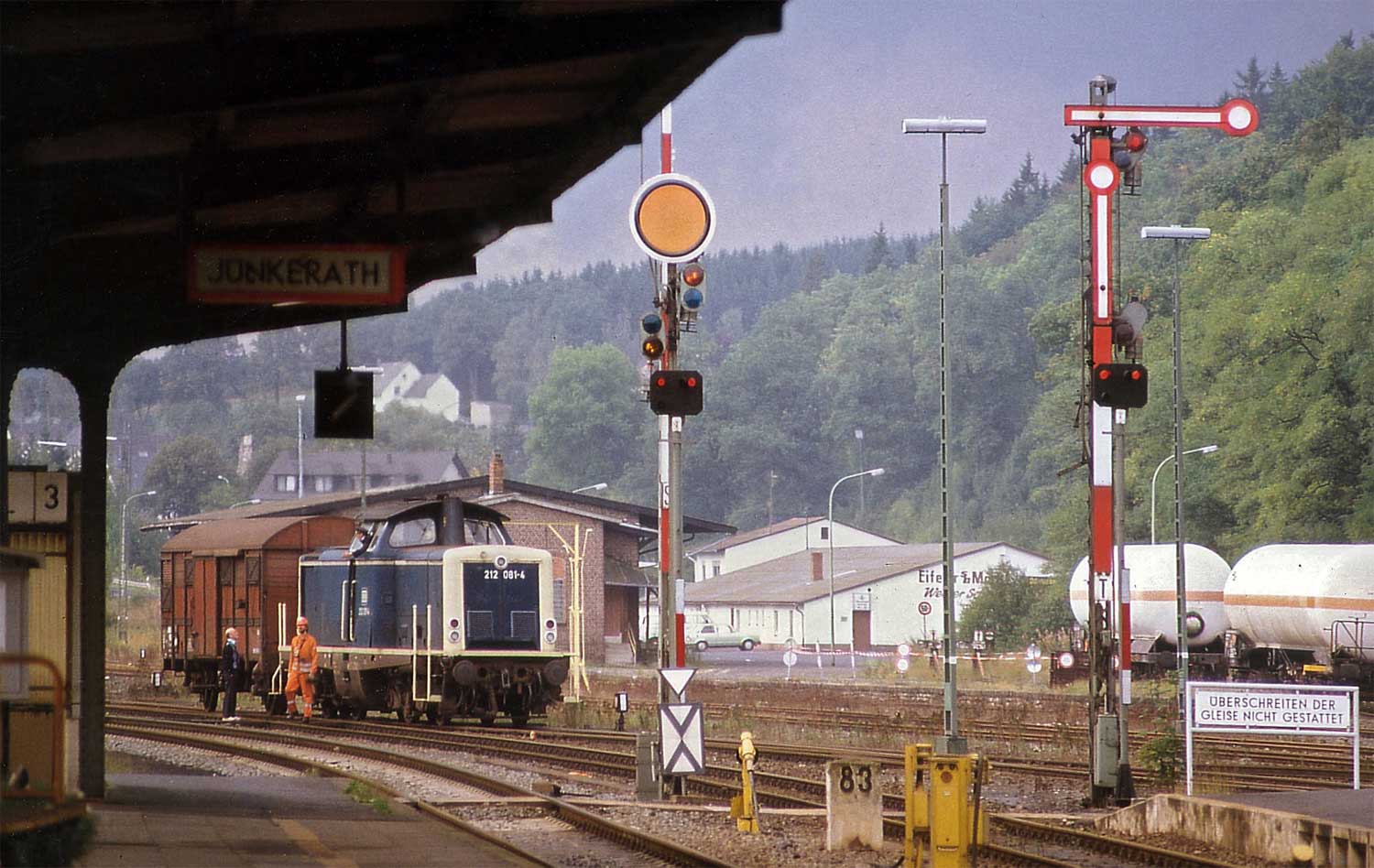 | Jünkerath | 82,97 | km 47,73 der Strecke Dümpelfeld 0,0 - Ahrdorf 18,35 - Lissendorf 43,84 - (Jünkerath 47,73) |