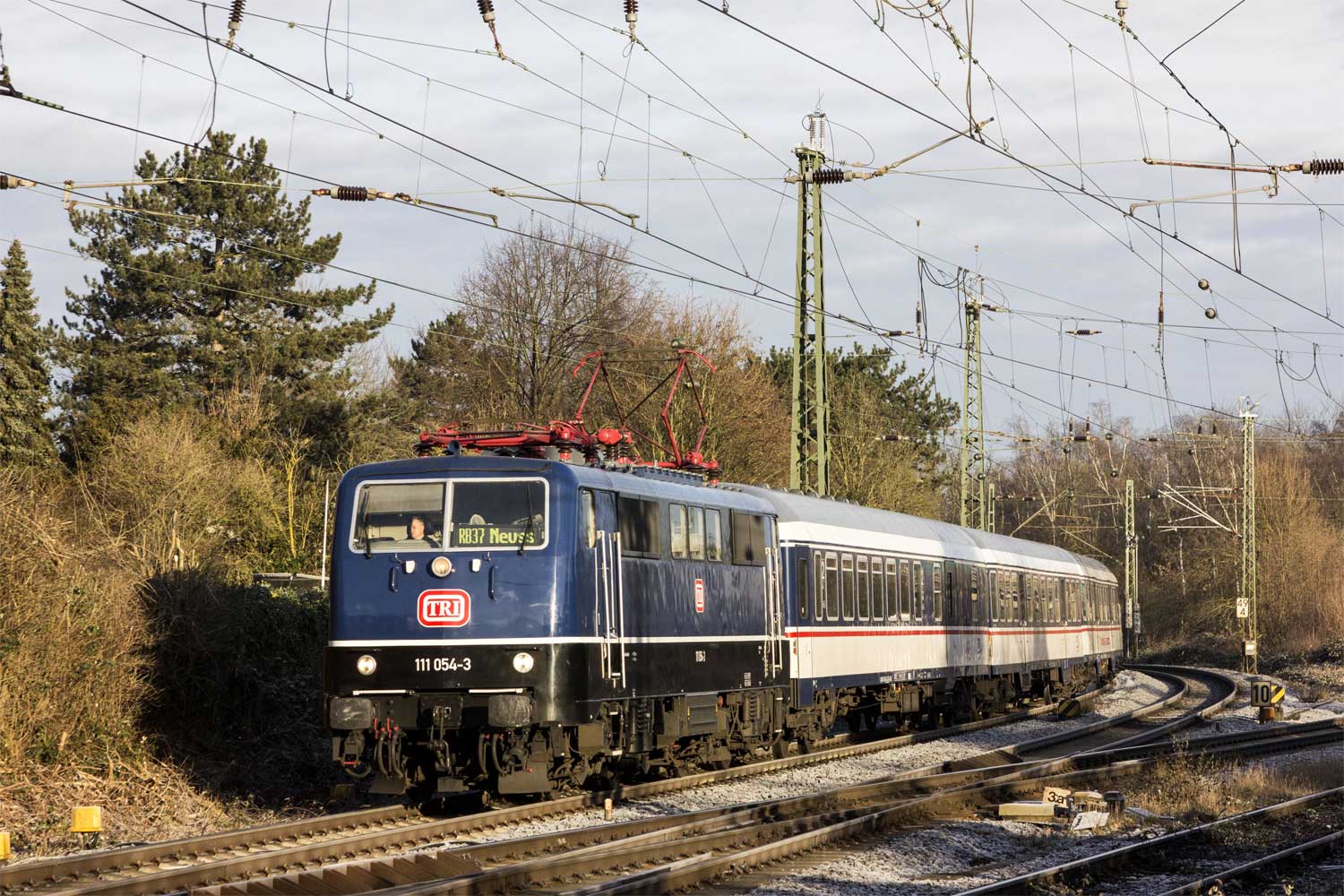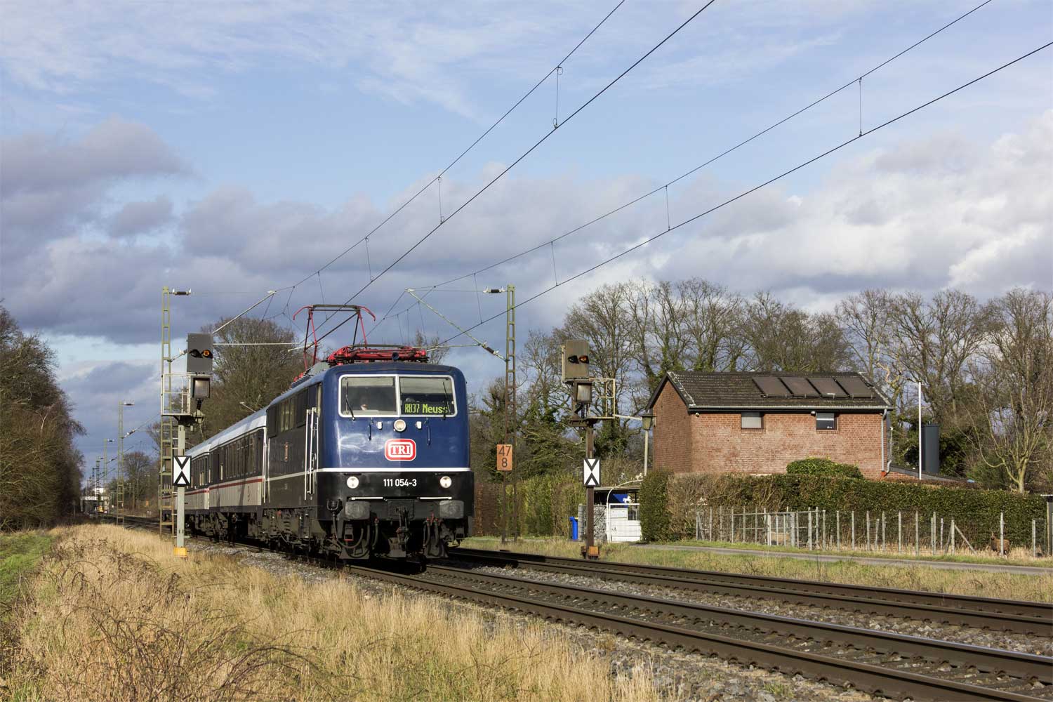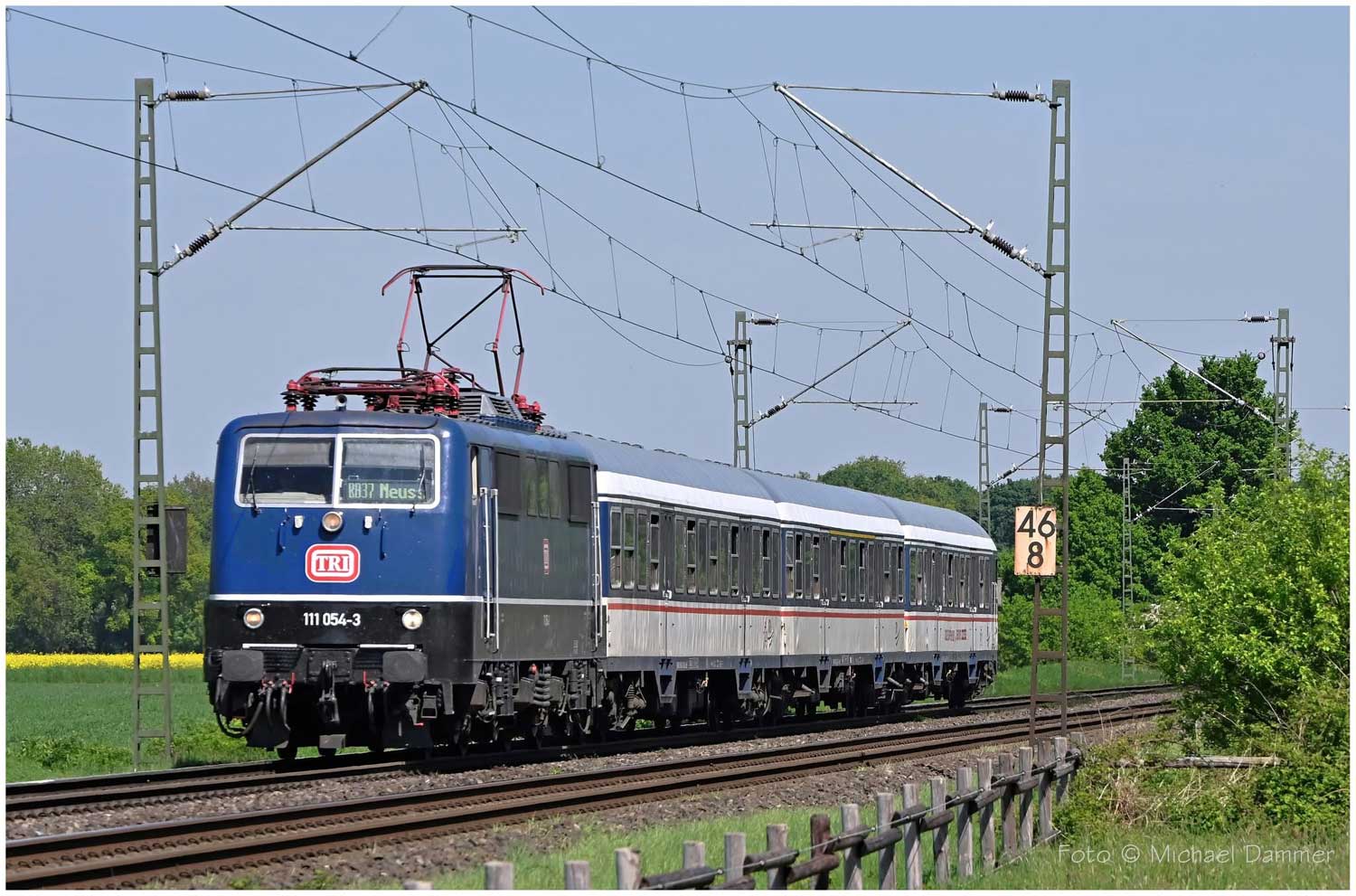 Als Schlusslok die 110 474, die den Zug dann ab Krefeld unter dem Fahrdraht weiter beförderte