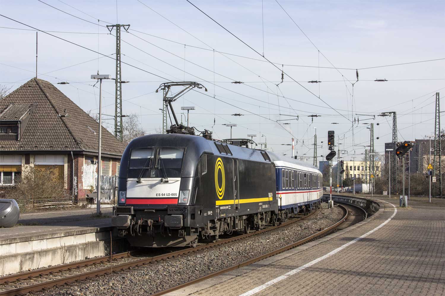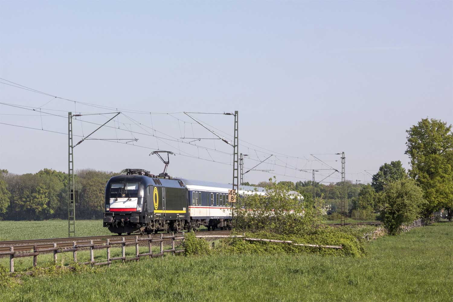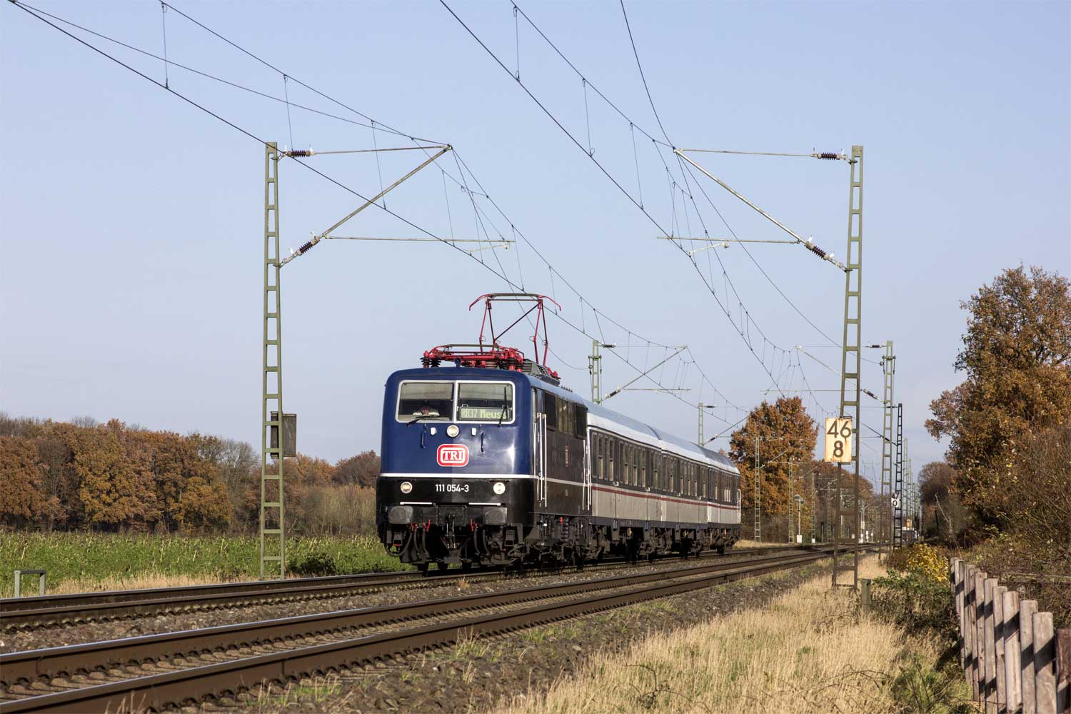 Als Schlusslok die 110 474, die den Zug dann ab Krefeld unter dem Fahrdraht weiter beförderte