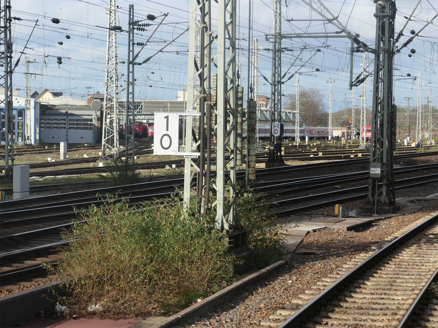 | km 0,0 der Strecke Krefeld Hbf 0,0 - Mönchengladbach-Neuwerk 14,70 - Mönchengladbach Hbf 18,00 mit abgehender Strecke (Krefeld Hbf 0,0) - Mönchengladbach-Neuwerk 14,70 - Rheydt Vbf 28,5 | ||