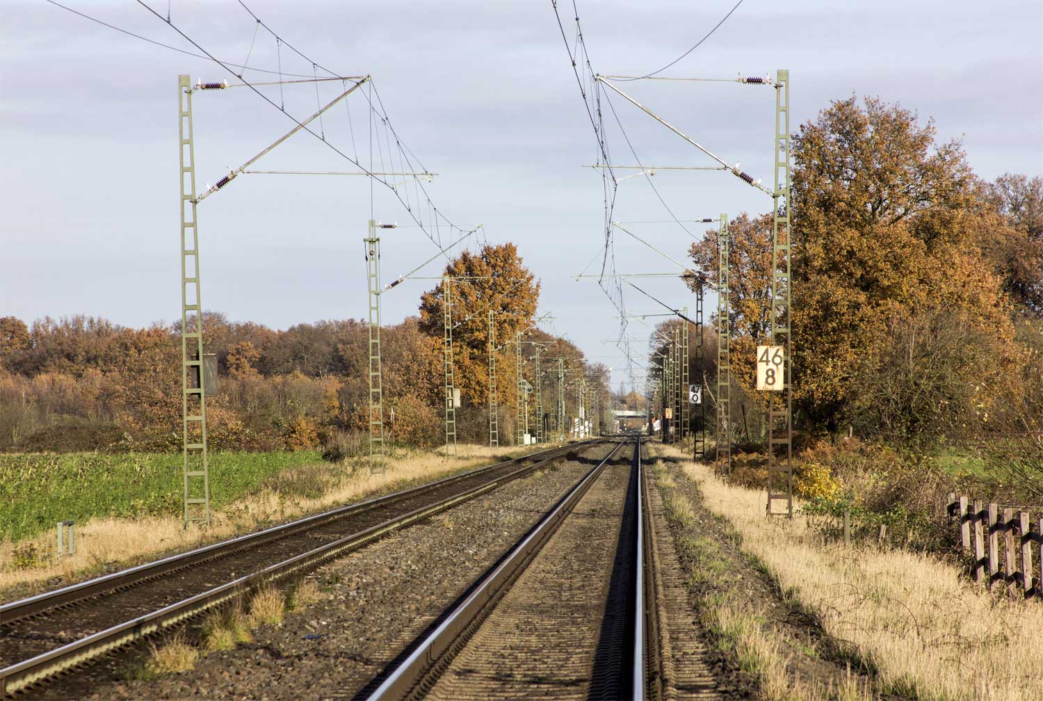bei km 126,7 zwischen Nütterden und Kranenburg - Blick Richtung Nütterden