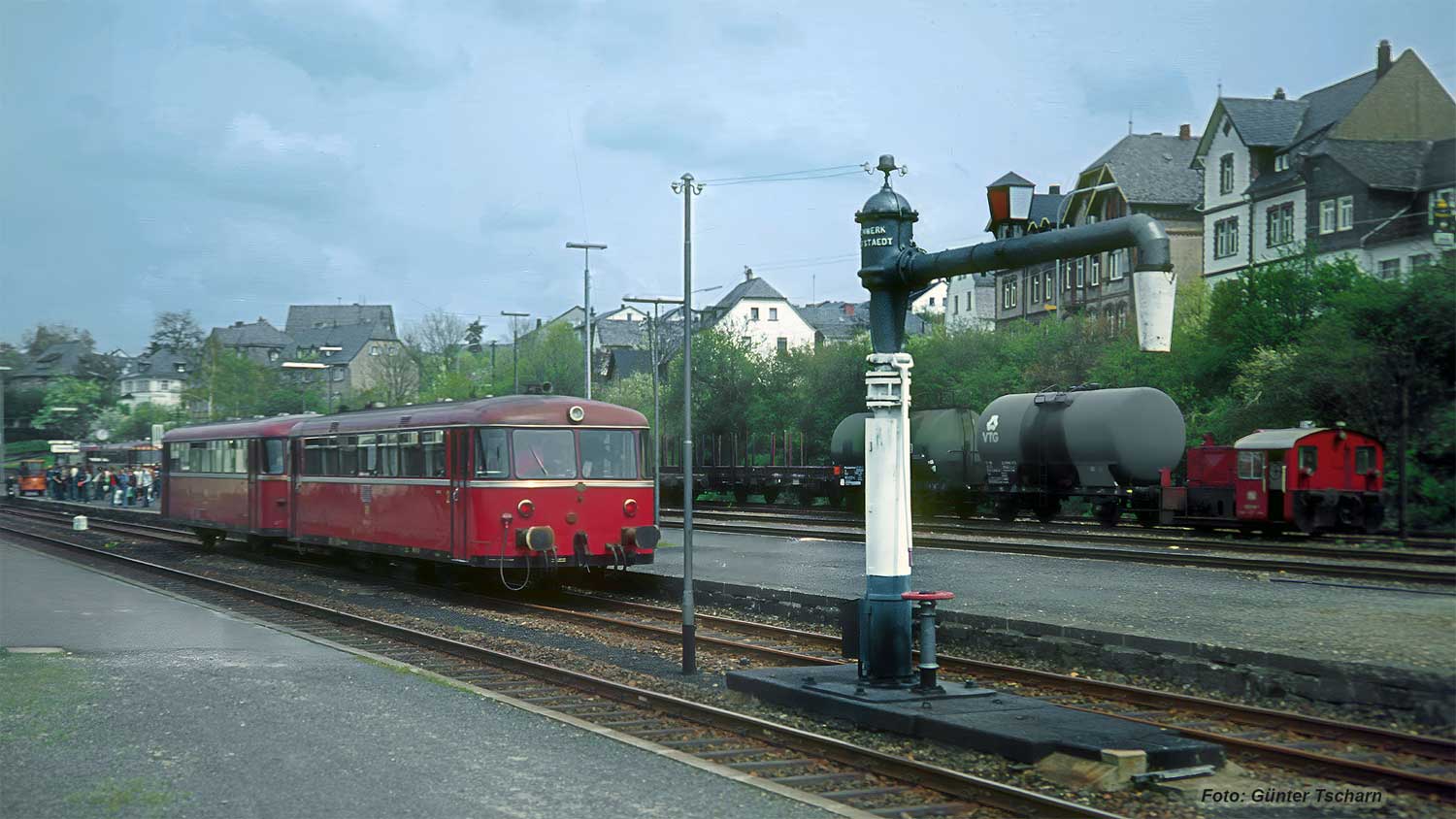 Am 20. Mai 1977 rollte gegen 13.05 Uhr auf Gleis 2 verspätet der 6879 (Boppard 11.28 – 12.59 Simmern) mit 798 540 und einem 998 an der Spitze herein.