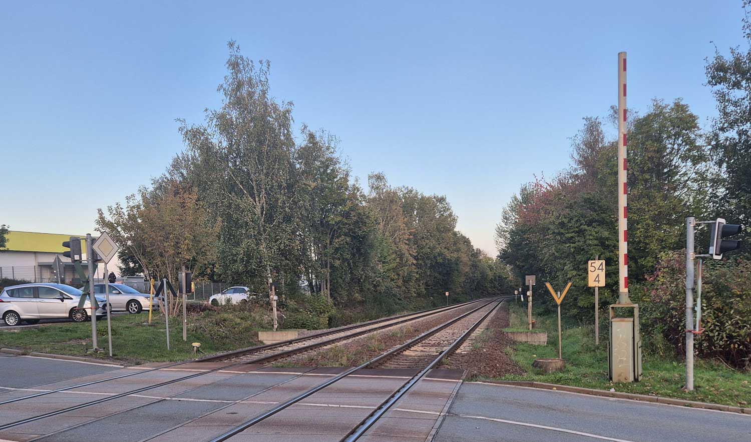 Bü km 47,5 und km 47,6 in Burgstädt - Blick Richtung Chemnitz