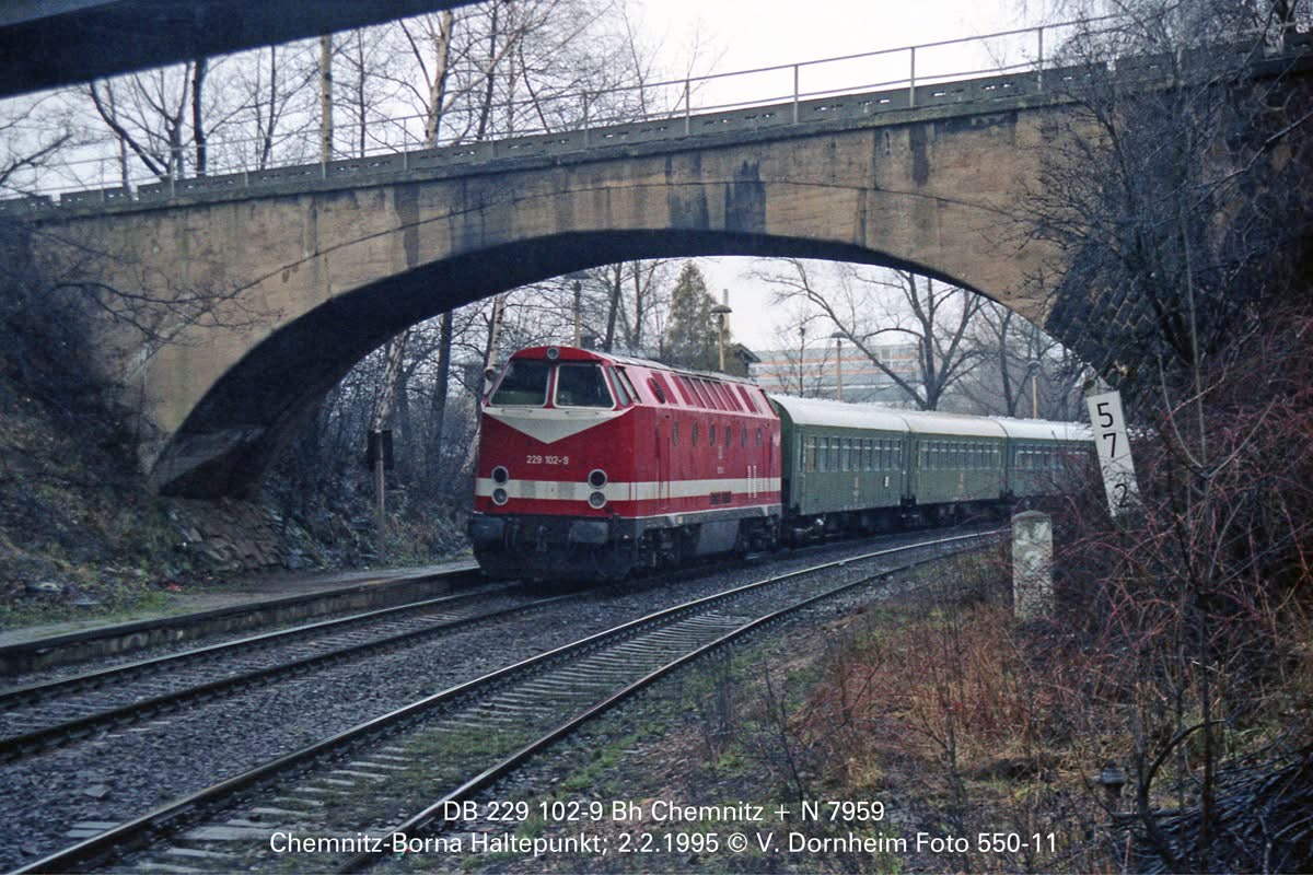 | Borna b Leipzig | 7,13 | km 0,0 der Strecke [Borna (b Leipzig) 0,0] - Neukirchen-Wyhra 5,43 - Bad Lausick 18,52 - Großbothen 30,54 (BGr) |