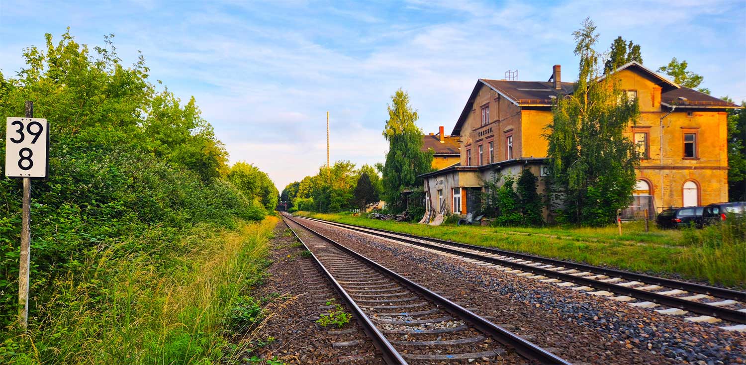 | km 21,12 der Strecke Leipzig Bayerischer Bf 0,12 - Altenburg Hbf 38,63 - Werdau 73,81 - Reichenbach (Vogtl) 90,96 - Plauen ob. Bf 116,11 - Hof (Saale) 164,8 (LH) | ||