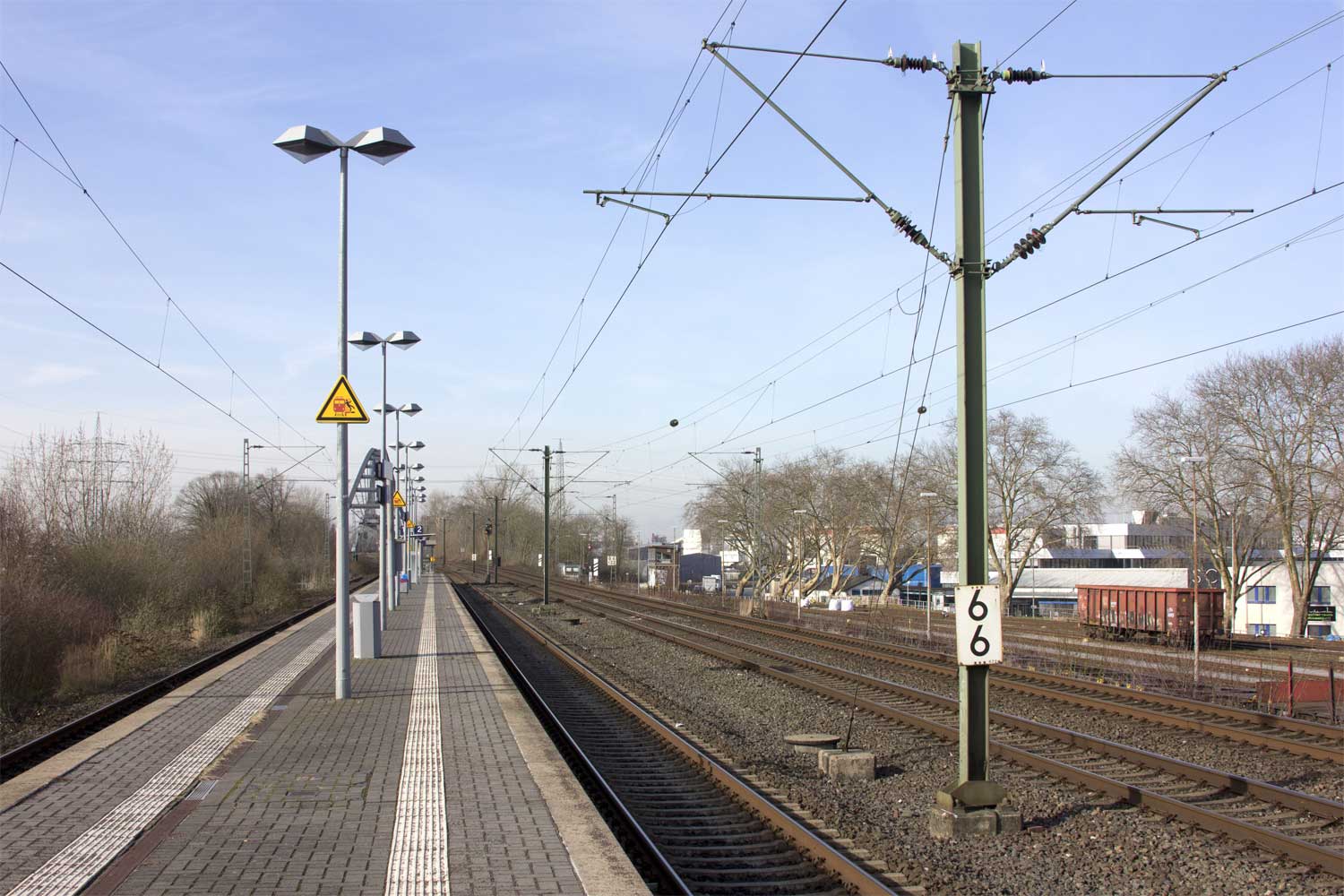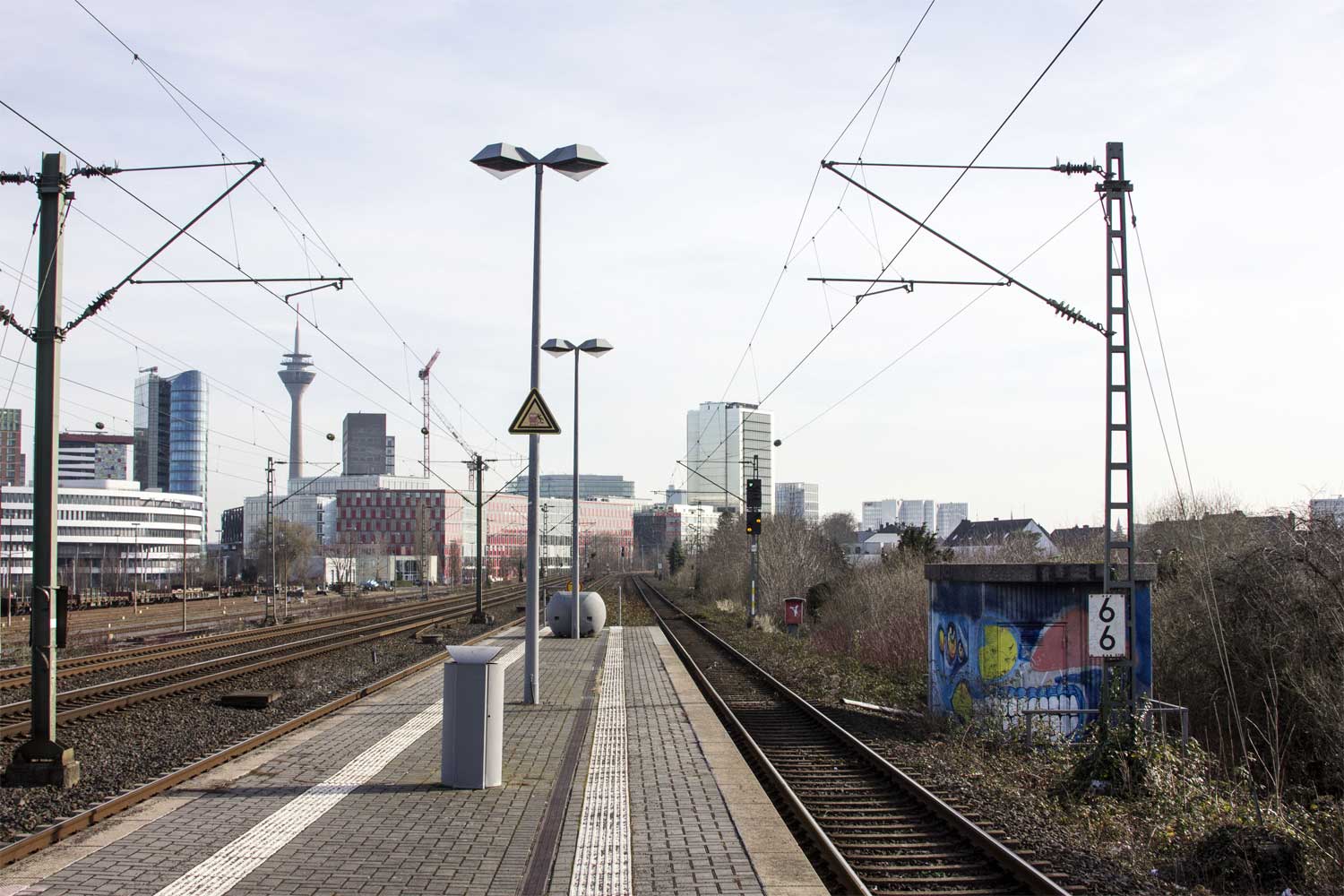 | km 39,47 der Strecke Köln-Messe/Deutz 0,0 - Düsseldorf Hbf 39,47 - Duisburg Hbf 63,11 - Oberhausen Hbf 70,70 - Gelsenkirchen Hbf 89,13 - Dortmund Hbf 119,51 - Hamm (Westf) Pbf 150,73 (2650) | ||