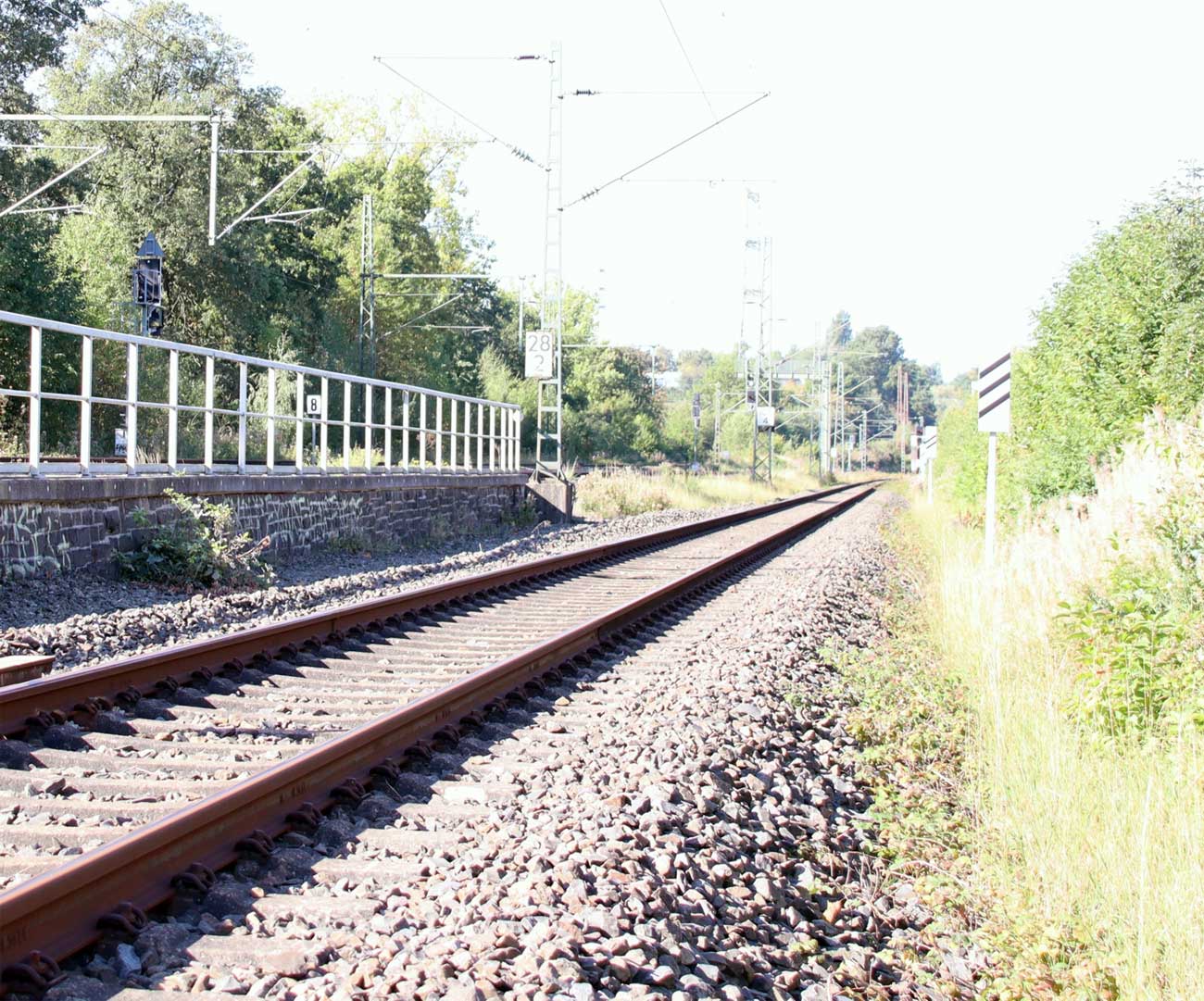 Mittig das Richtungsgleis der Strecke