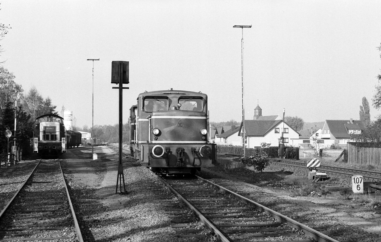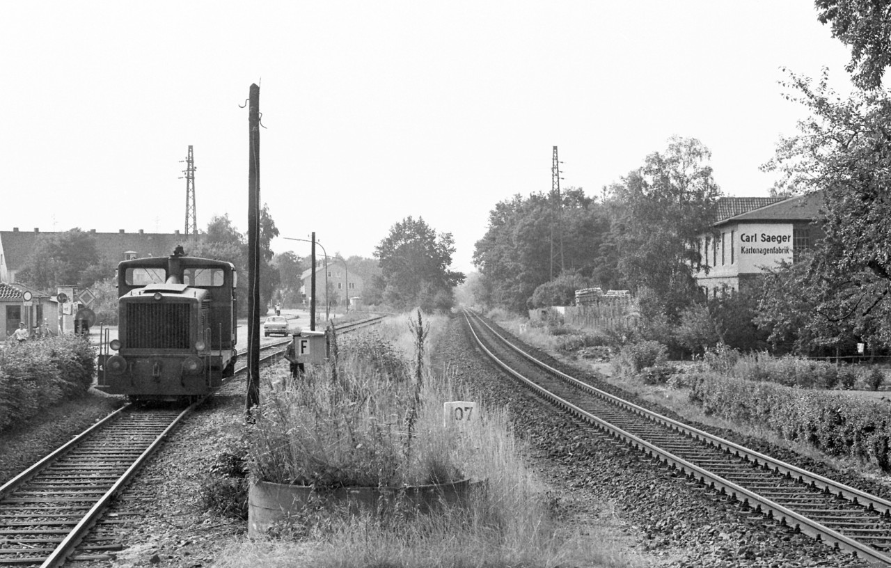 Die Aufnahme entstand kurz vor dem Schrankenposten 107, rechts die DB-Strecke von/nach Bramsche.