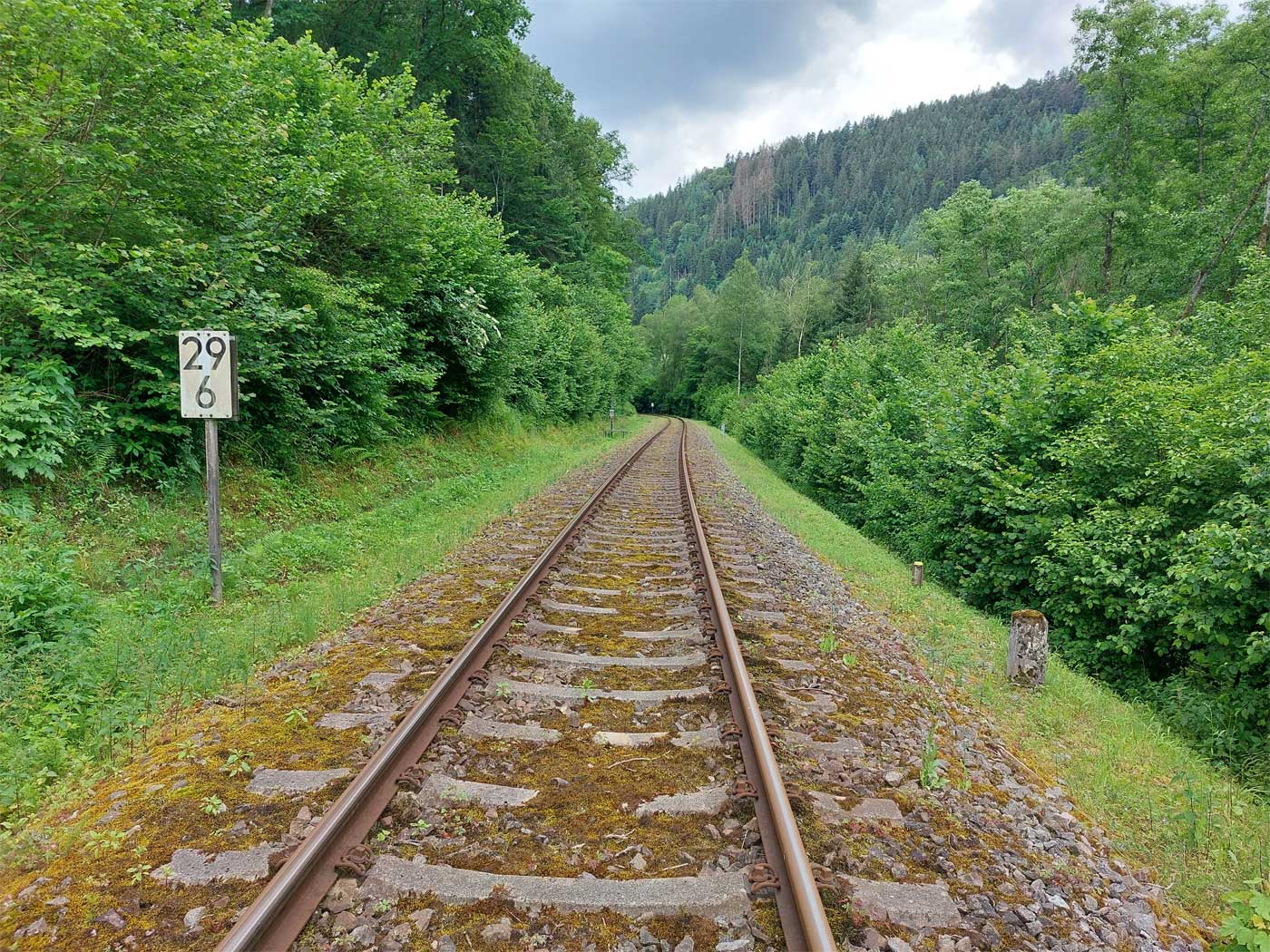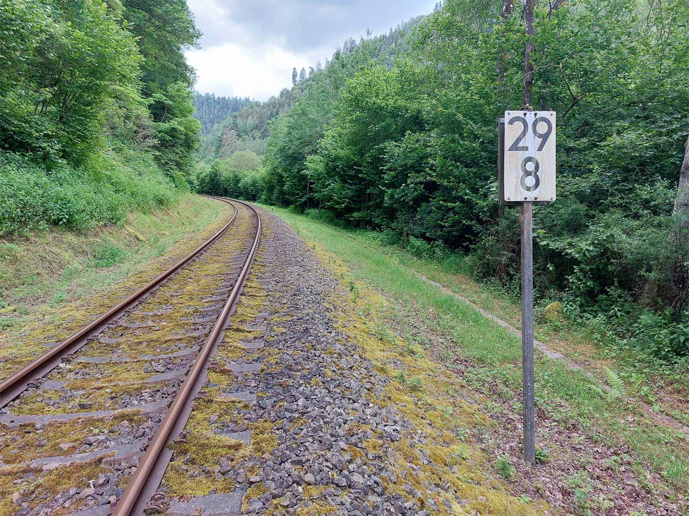 Links die Strecke Eutingen (Württ) 0,0 - Freudenstadt Hbf 29,91 - Schiltach 54,78