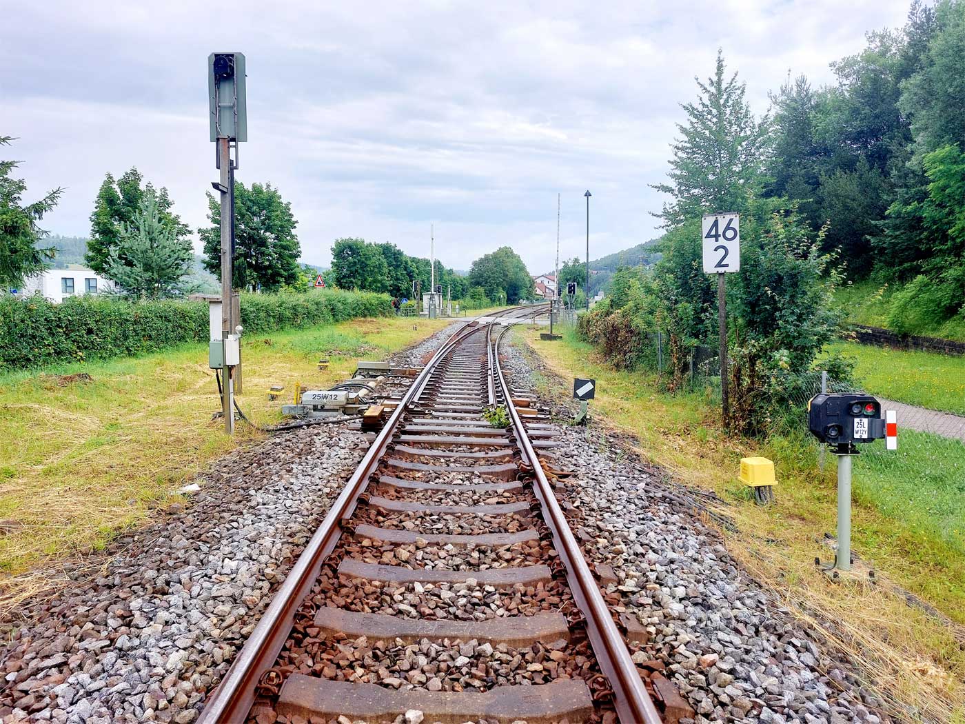 Rechts die Strecke Eutingen (Württ) 0,0 - Freudenstadt Hbf 29,91 - Schiltach 54,78