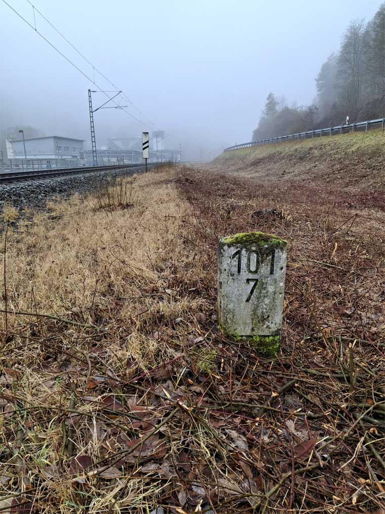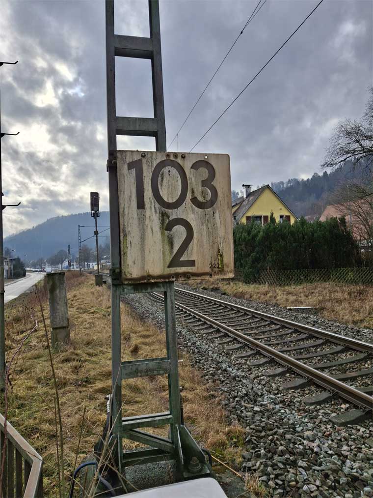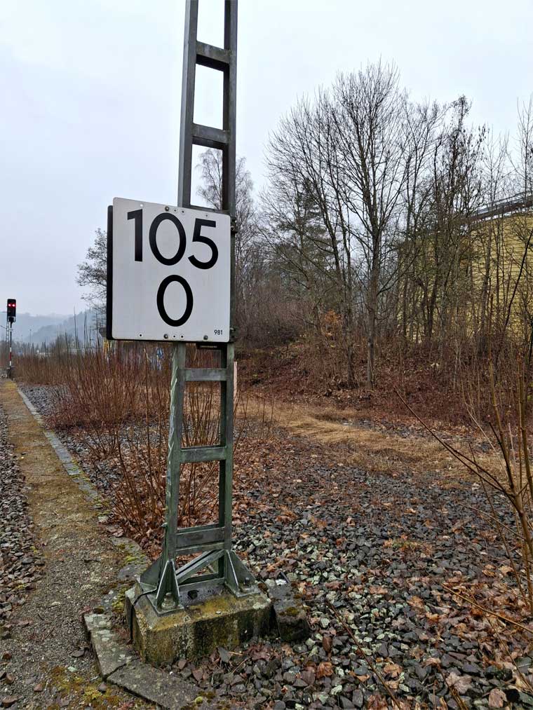 km 119,02 der Strecke Offenburg 0,0 - Villingen 85,86 - Donaueschingen 99,72 - Immendingen 119,02 - Singen (Hohentwiel) 149,14