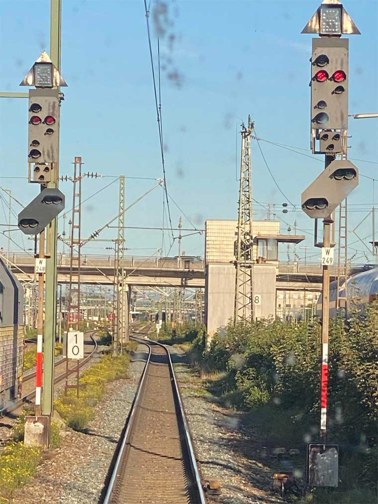 Am Regensburger Rbf (km 2,2; nicht zu verwechseln mit Regensburg Ost Rbf) [railnav.geopp.de] fanden wir das schöne Stellwerk 5, das als Motiv für den D784 Passau – Würzburg – Hannover – Hamburg-Altona mit 111 020 an der Spitze herhalten musste.