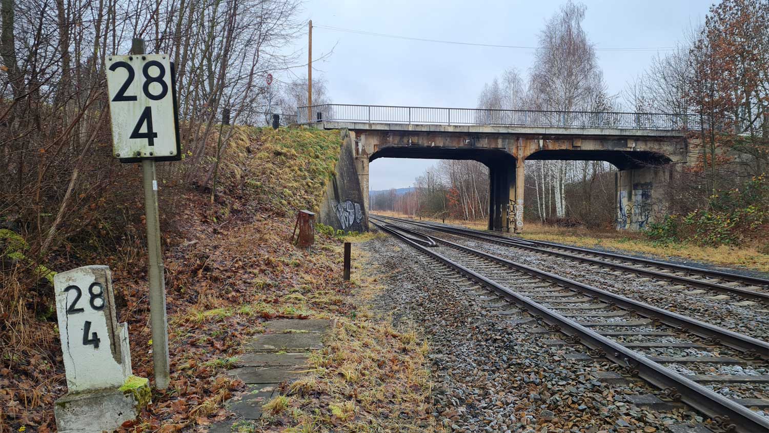 km 145,107 der Strecke Settenz (Řetenice) 0,0 - Lobositz (Lovosice) 36,37 - Böhmisch Leipa (Česká Lípa hl. N.) 84,96 - Deutsch Gabel (Jablonné v Podještědí) 114,557 - Reichenberg (Liberec) 145,107