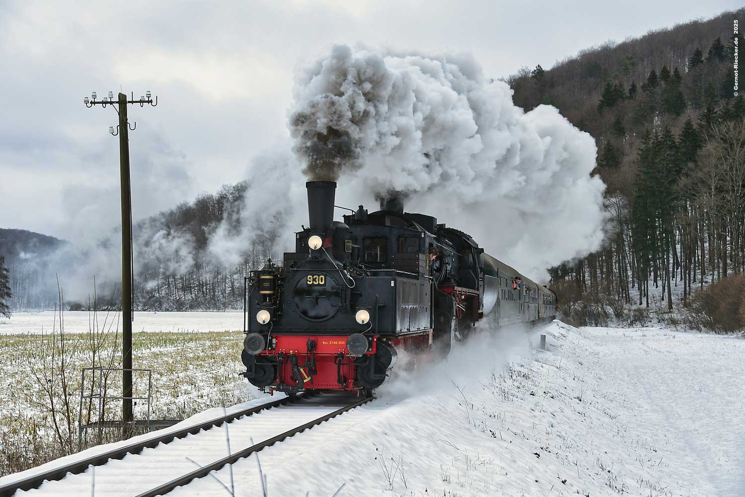km 34,4 (links neben dem Zug) gehört zur Strecke